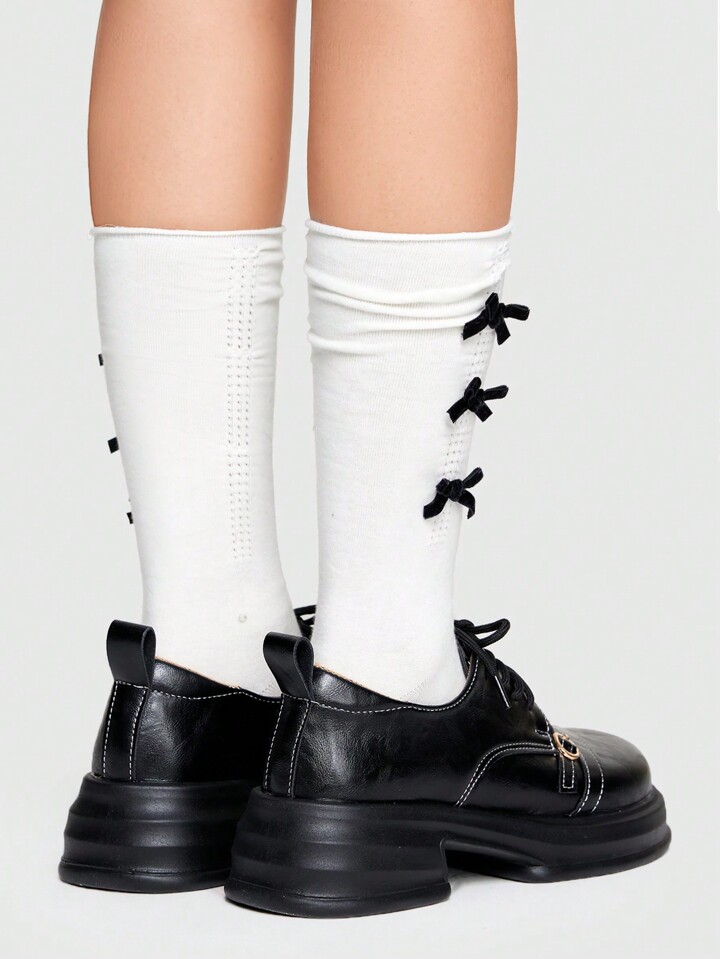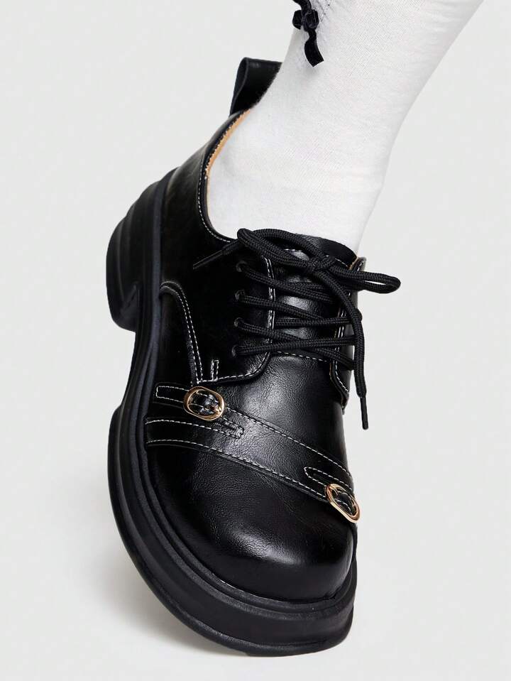 Grunge Punk Collegiate Style Mary Jane Oxfords, Lace-Up Soft Bottom Loafers, Formal Work Shoes For Women, Wedge & Platform Sole New Year Holiday