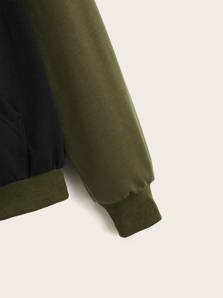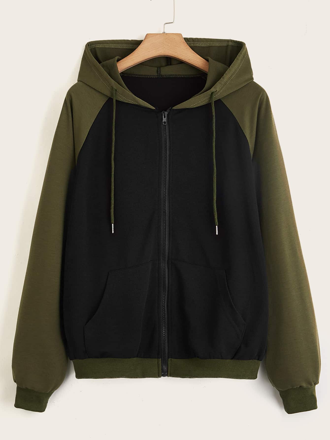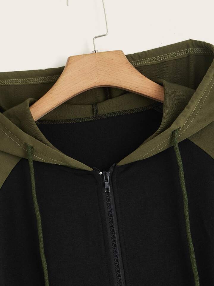Grunge Punk Colorblock Zip Up Drawstring Hoodie