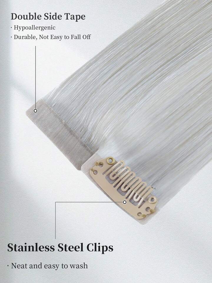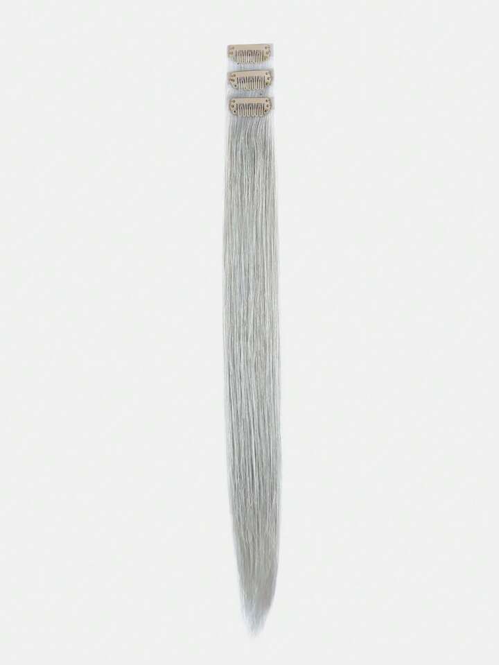 Grunge Punk Colored Clip In Hair Extensions 100% Real Human Hair 18 Inch 3Pcs Grey Invisible Straight Highlight Colorful Hairpieces Rainbow Hair Extension For Women/Girls