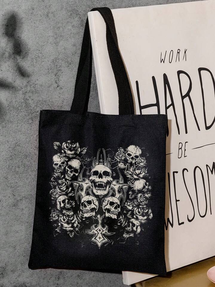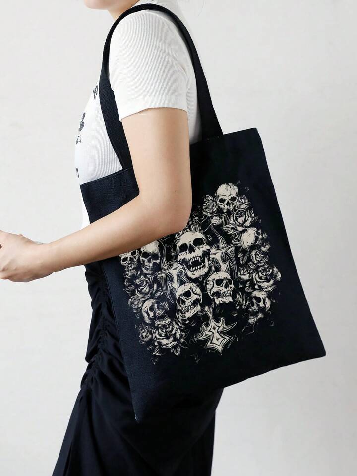 Grunge Punk Creative Skull Double-Sided Printed Shoulder Canvas Bag