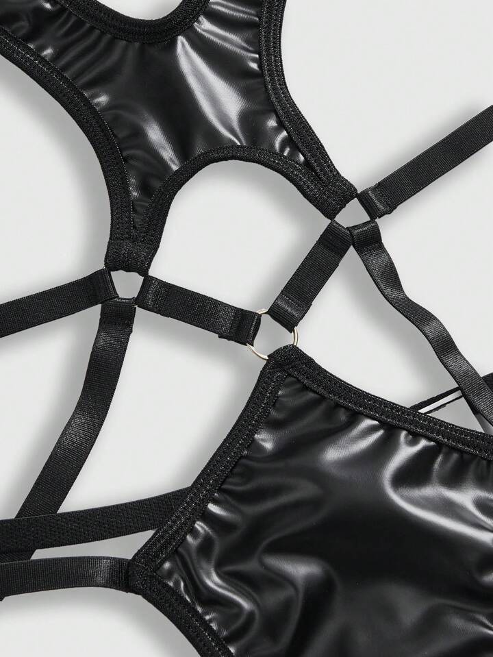 Grunge Punk Dark Punk PU Material Underwire Sexy Lingerie Set