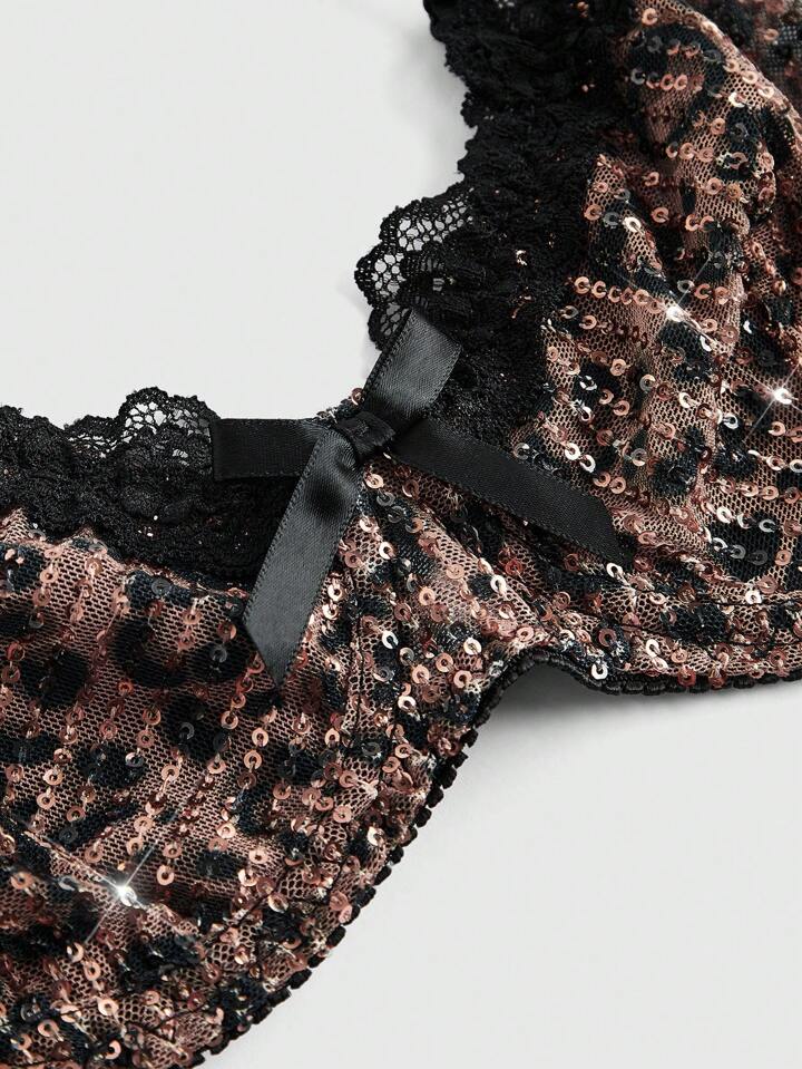 Grunge Punk Dark Punk Y2K Leopard Print Mesh Bead Decor Underwire Lingerie Bralette