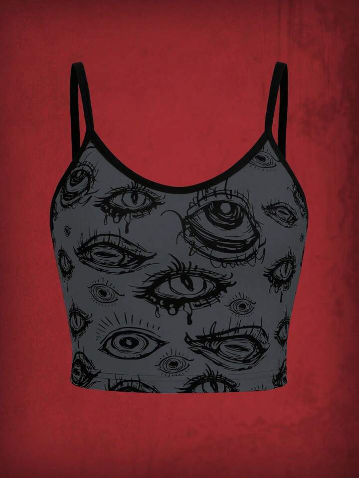 Grunge Punk Eye Print Contrast Binding Cami Top