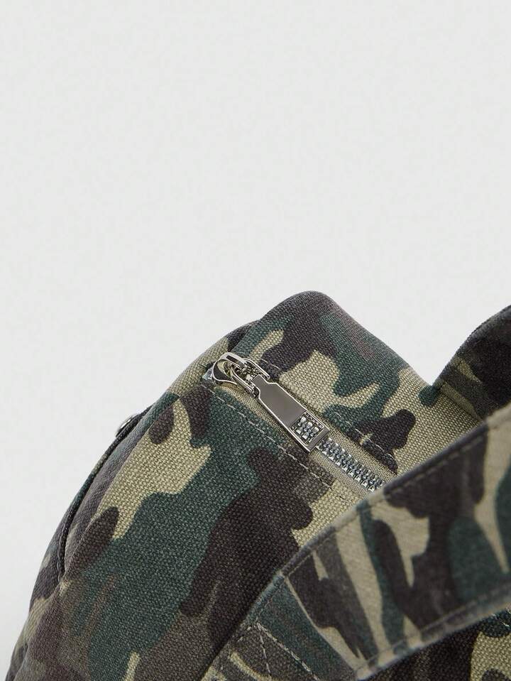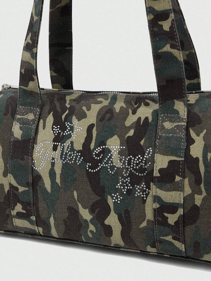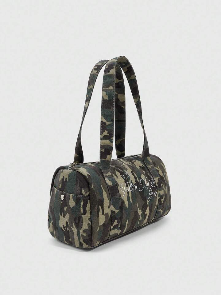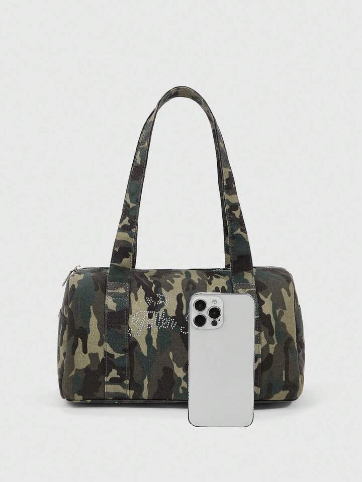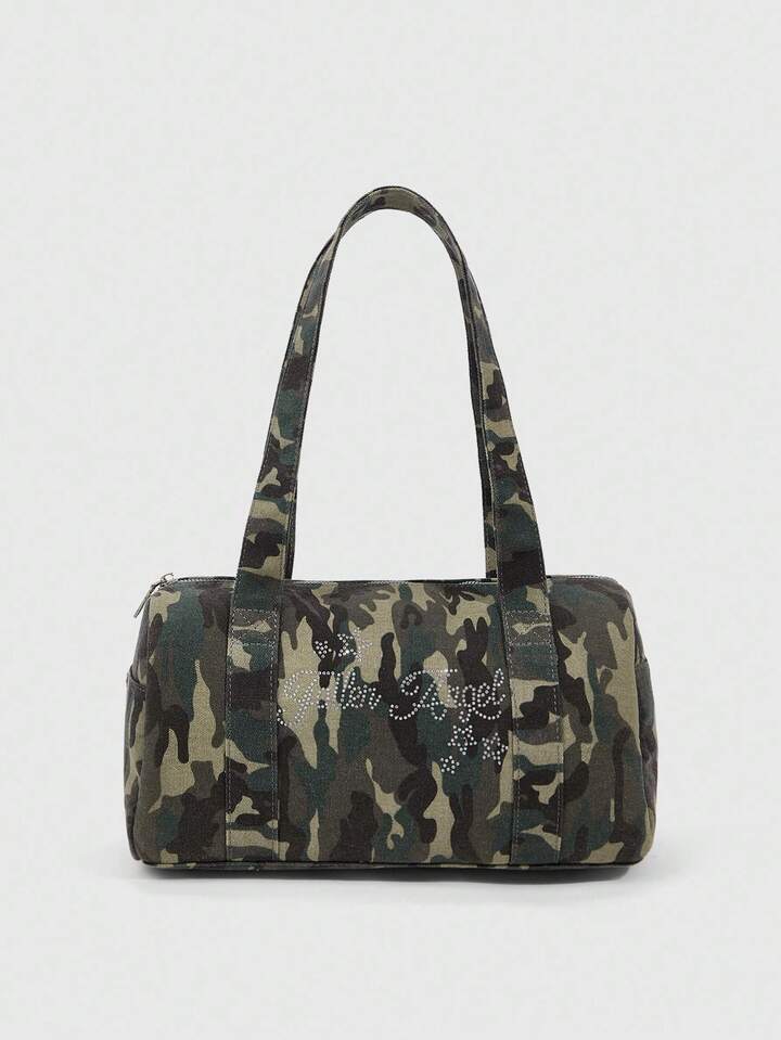Grunge Punk Fashionable Casual Camouflage Print Rhinestone Embellished Shoulder Bag