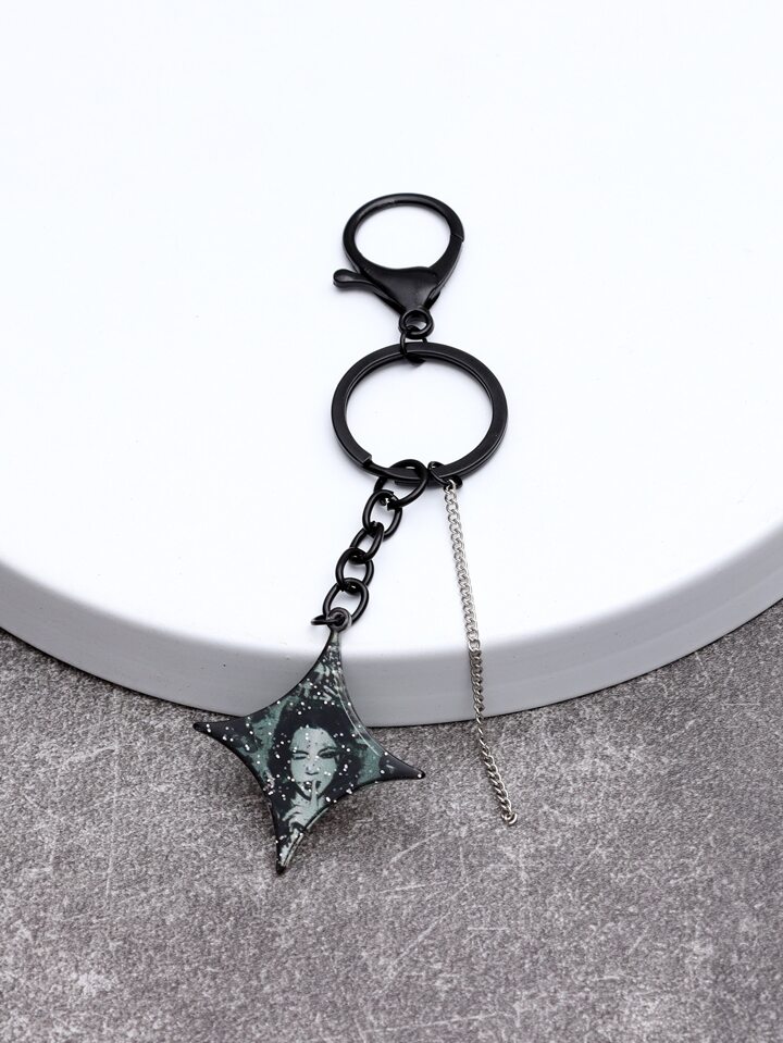 Grunge Punk Figure Graphic Four-pointed Star & Chain Charm Keychain