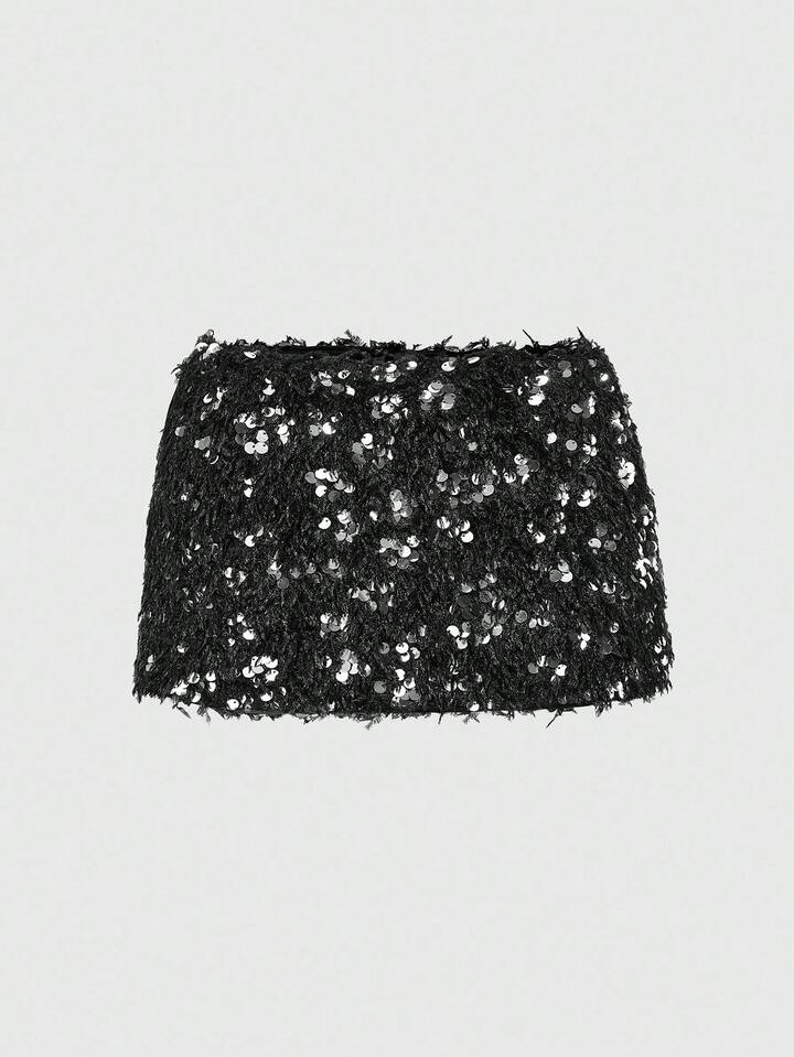 Grunge Punk Glitter & Furry Super Low Waist Mini Bodycon Skirt, Party