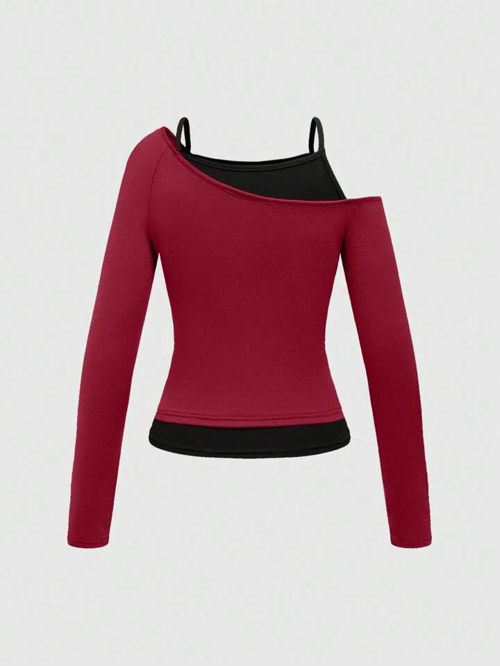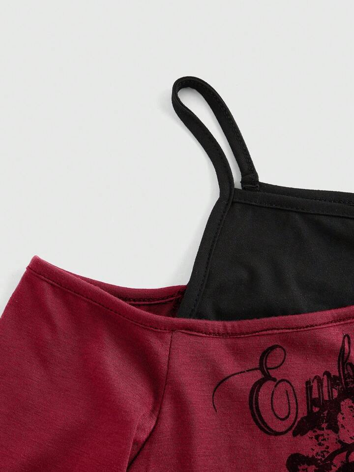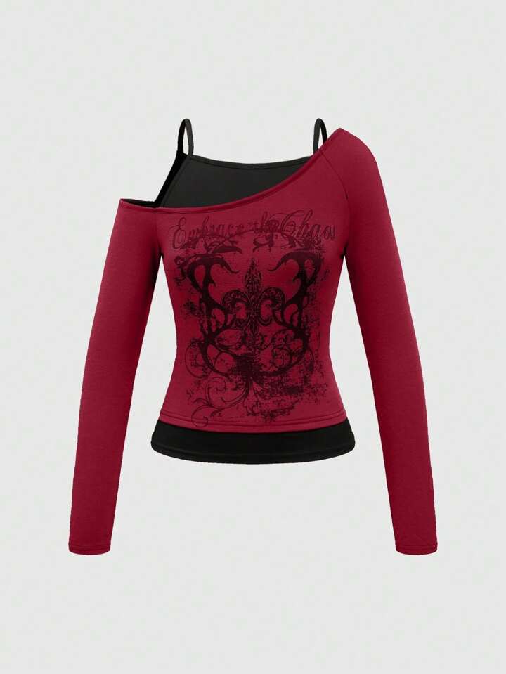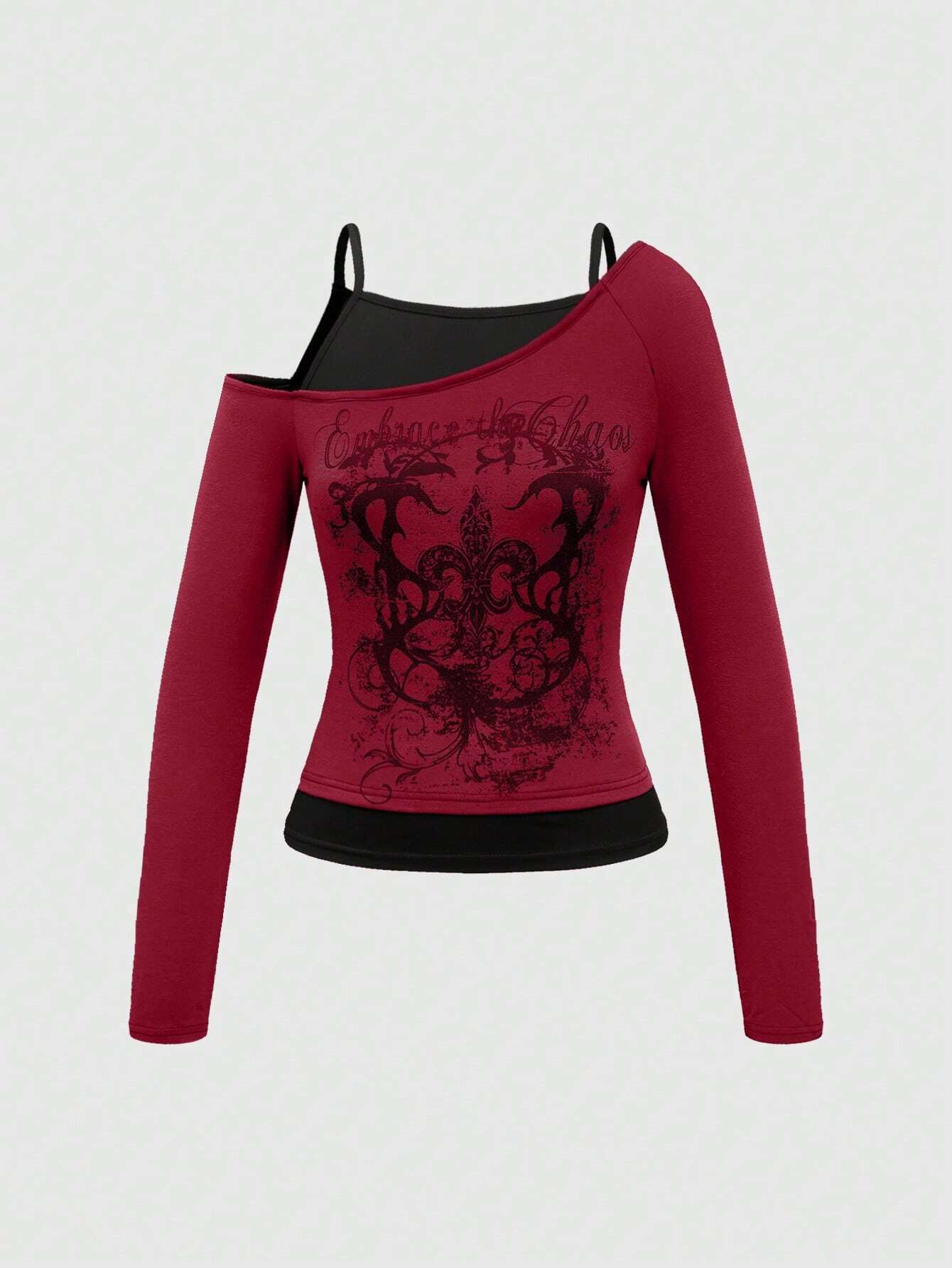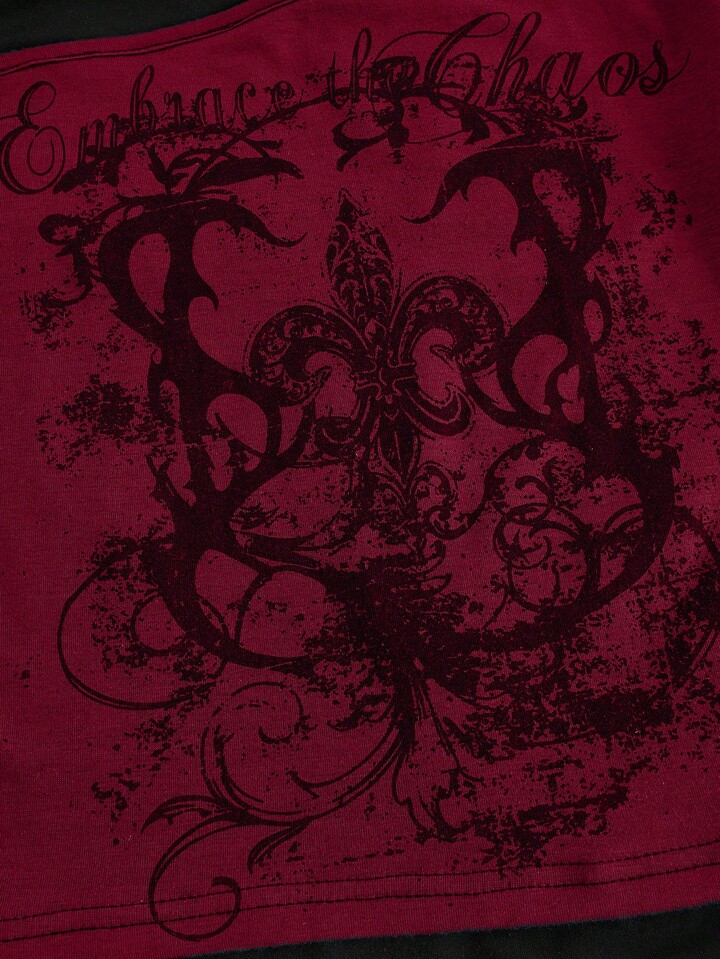 Grunge Punk Grunge Vine Graphic Contrast Color Drop Shoulder Asymmetrical T-Shirt For Women