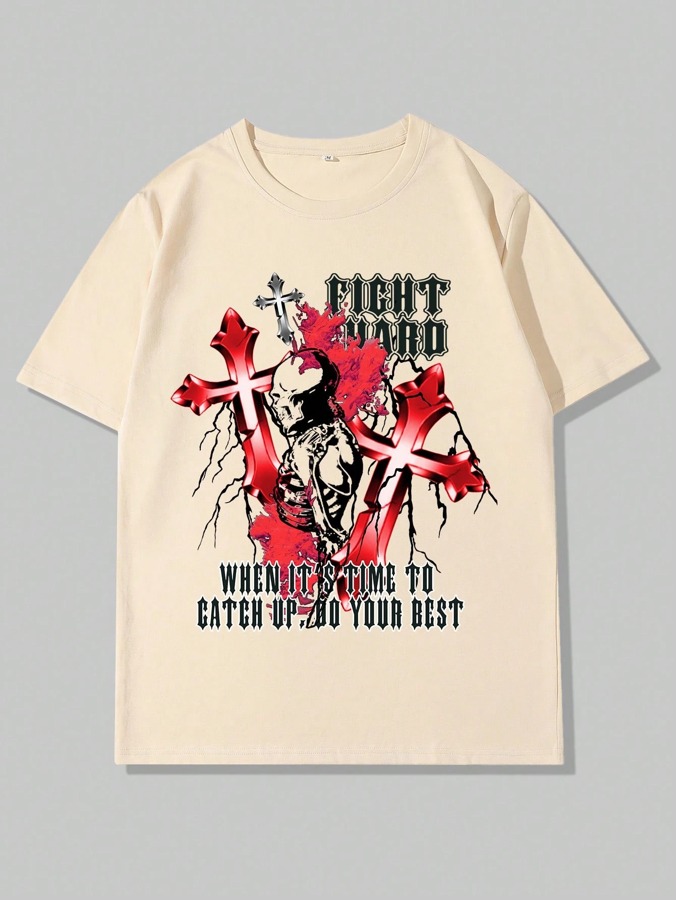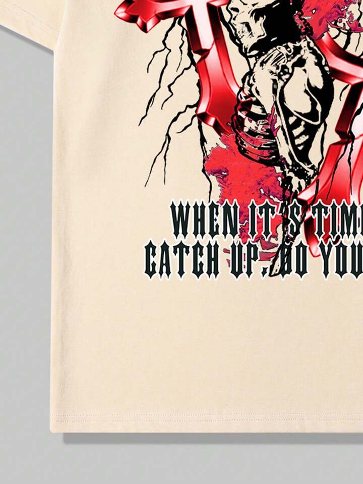 Grunge Punk Guys Skeleton & Slogan Graphic Tee