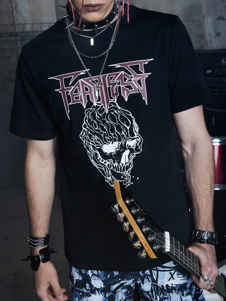 Grunge Punk Guys Skull & Letter Graphic Tee