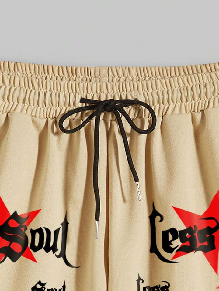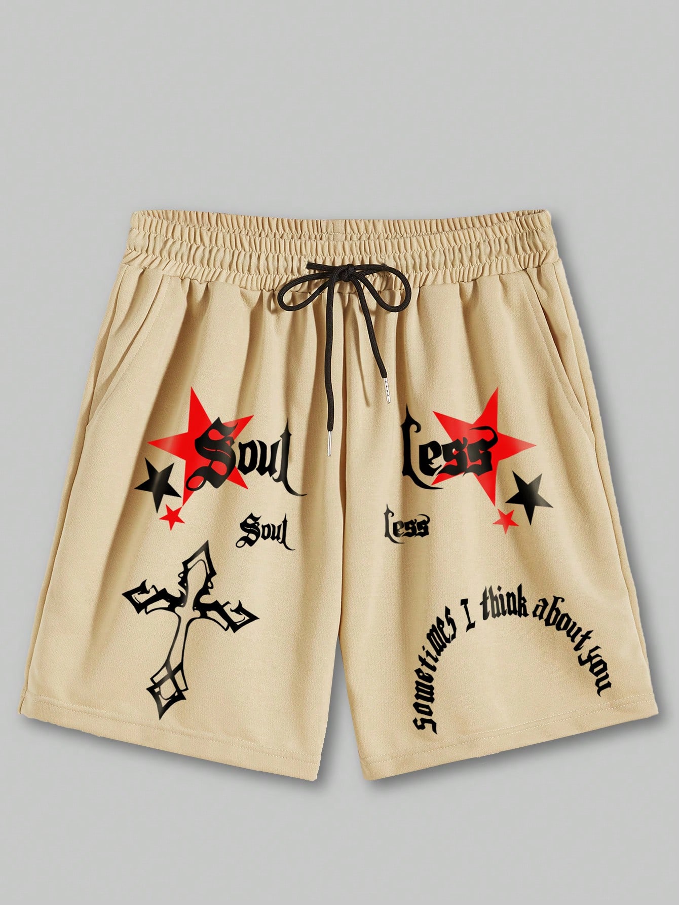 Grunge Punk Guys Slogan Graphic Drawstring Waist Shorts