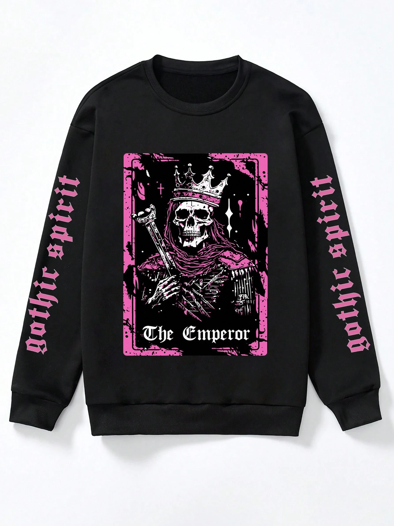 Grunge Punk Guys Slogan & Skull Print Pullover