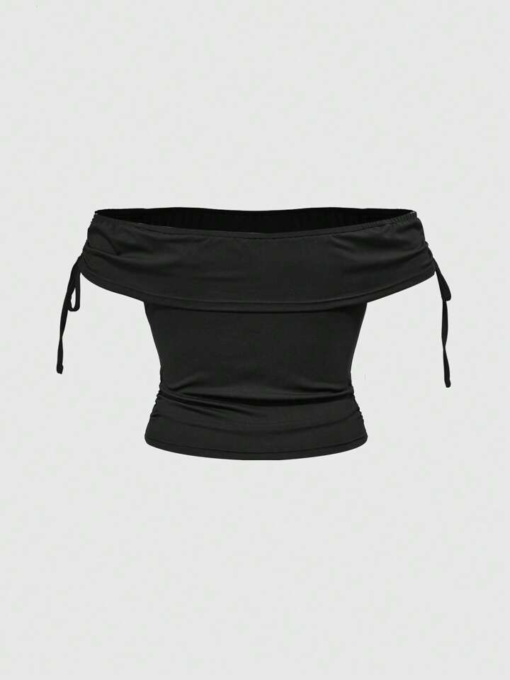 Grunge Punk Gyaru Plus Size Women Velvet Patchwork Leopard Print & Cross Graphic Off Shoulder Top
