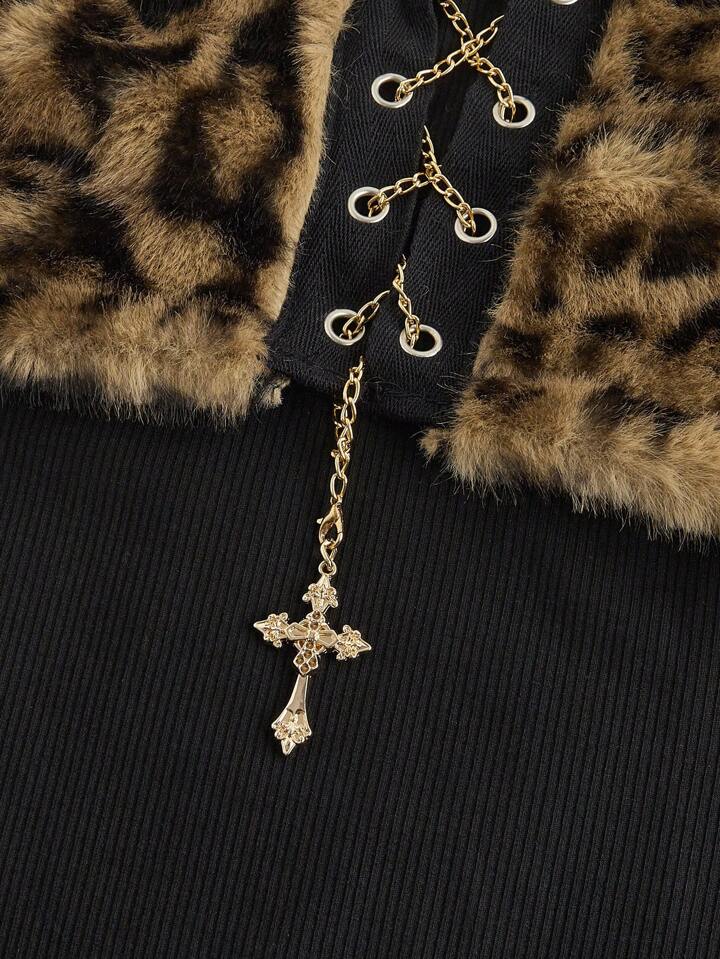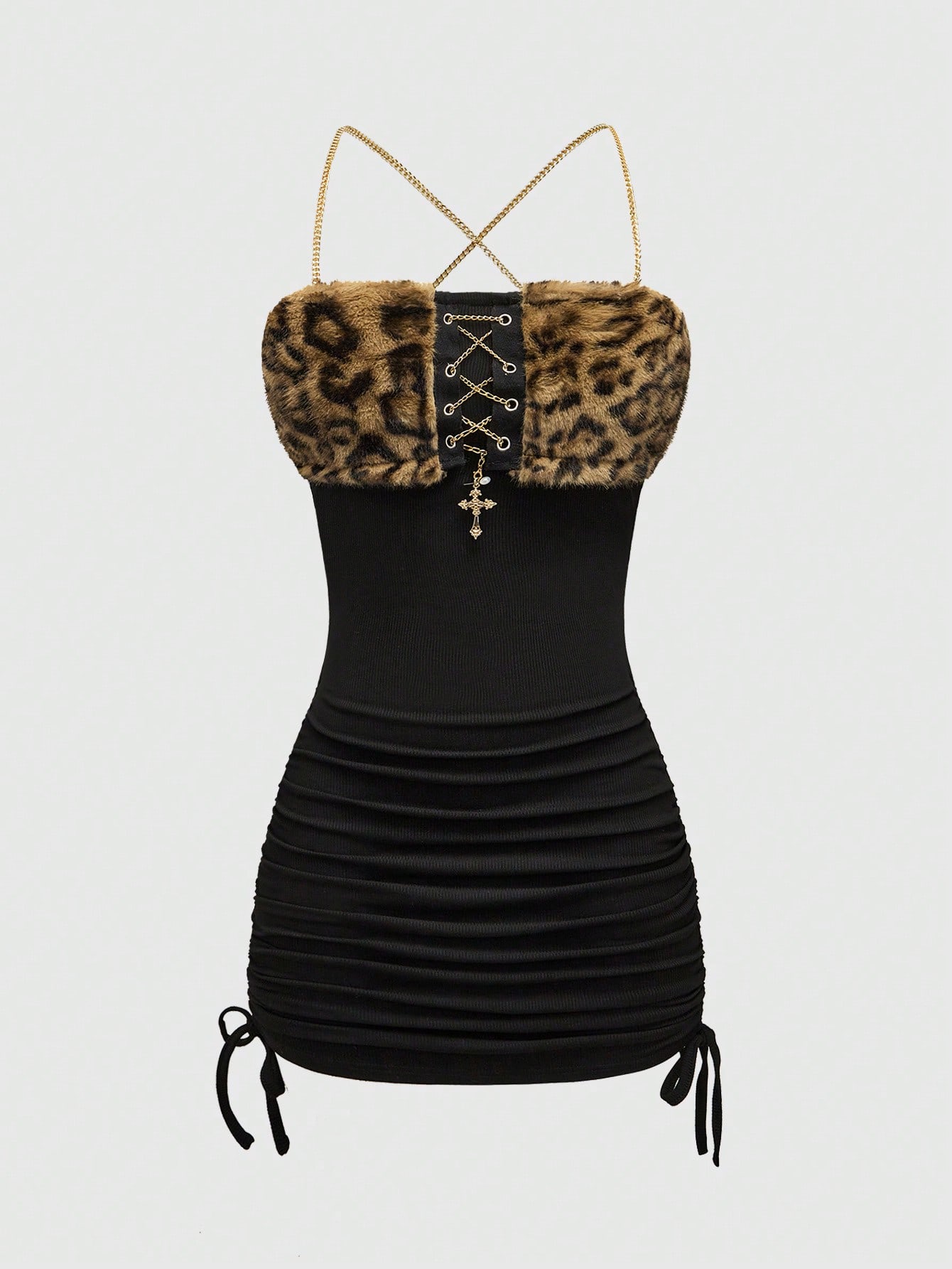 Grunge Punk [Gyaru] Y2K Harajuku Sexy Leopard Patchwork Furry Bodycon Mini Dress