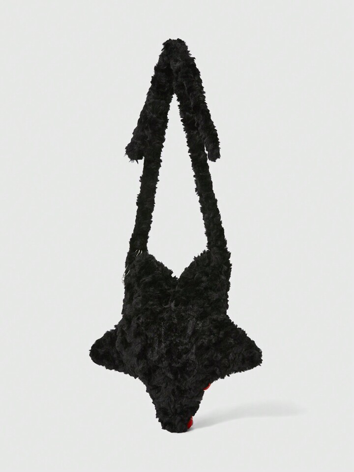 Grunge Punk Halloween Goth Star Fluffy Crossbody Bag With Cross Chain, Casual Y2K Edgy Punk Style Cyclops Monster Hair Fuzzy Shoulder Bag, Autumn/Winter
