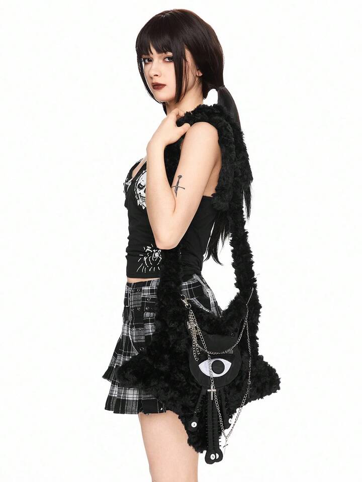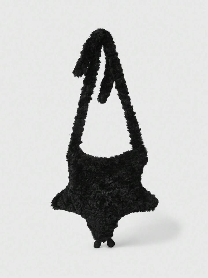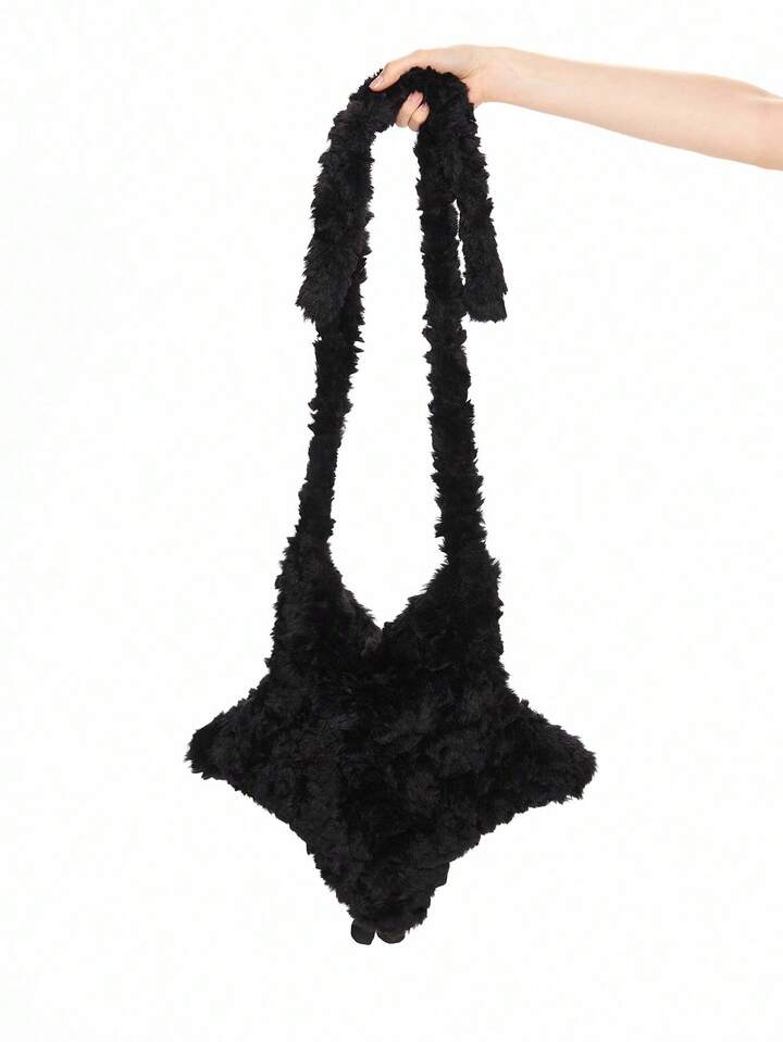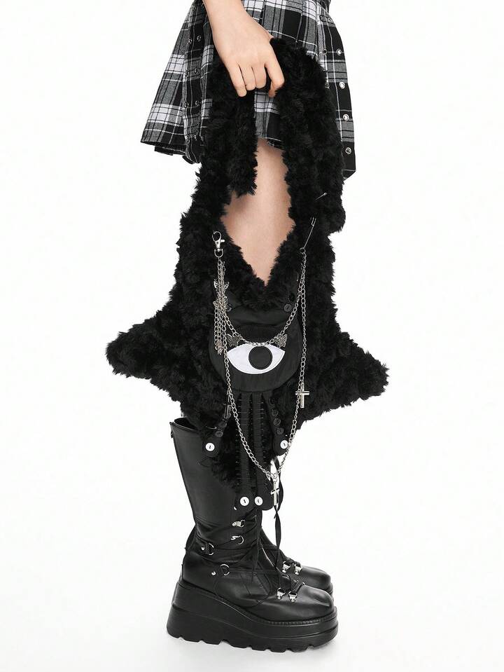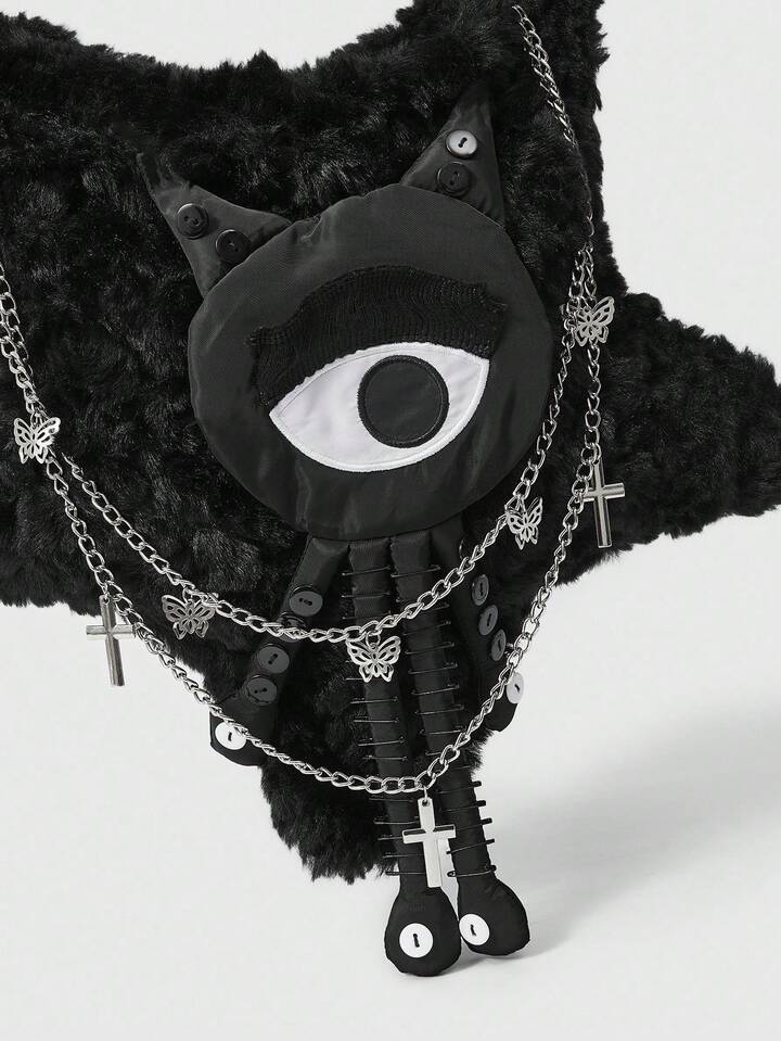 Grunge Punk Halloween Gothic Star Plush Crossbody Bag With Cross Chain And Cyclops Pattern, Y2K Punk Style Fuzzy Shoulder Bag For Women, Autumn/Winter, Halloween Bags Perfect For Fancy Party Matching With Halloween Costumes , Goth