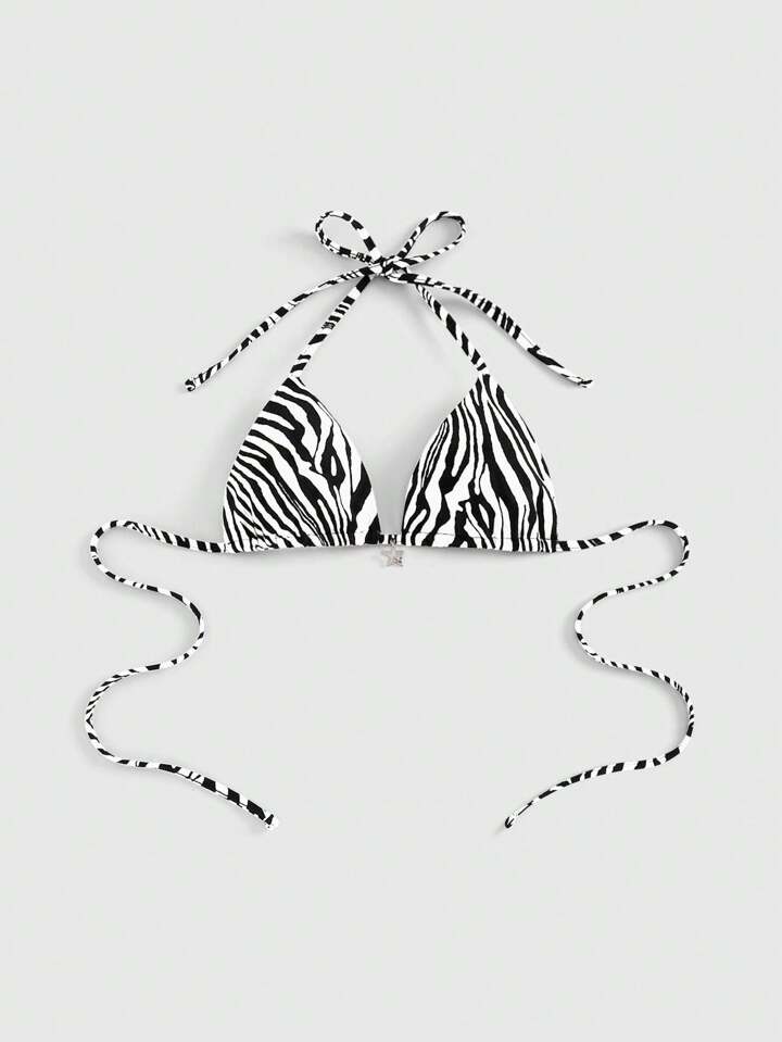 Grunge Punk Hot Girl Vintage Y2K Zebra Star Sexy Halter Neck Tie-Up Blouse For Women