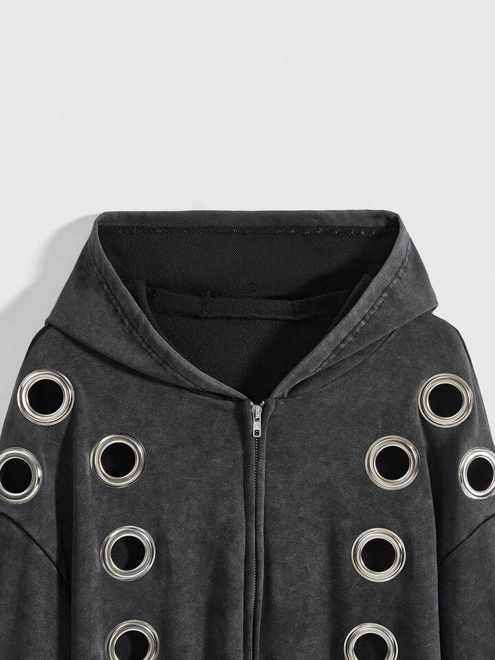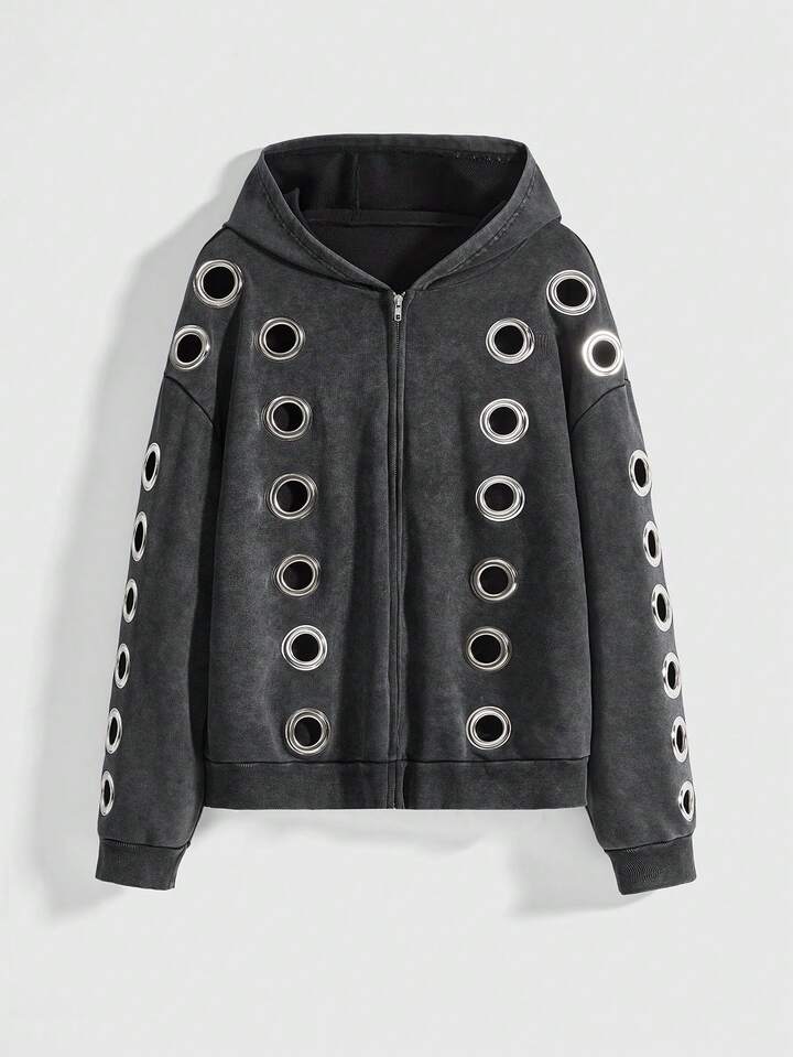 Grunge Punk Kpop Punk Metal Grommets & Sequins Decor Loose Fit Hooded Sweatshirt Sweatshirt For Women