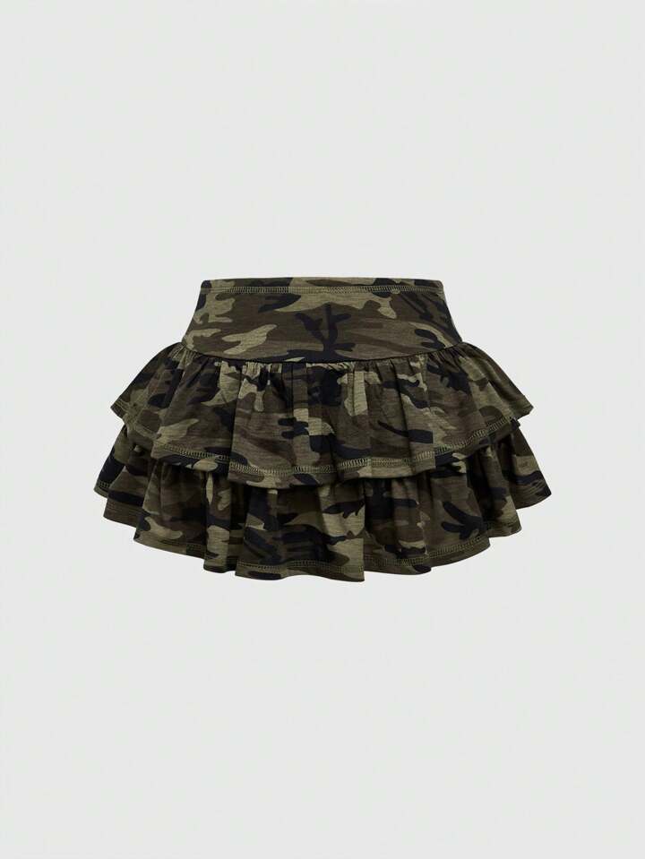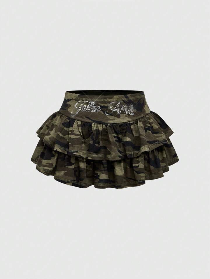 Grunge Punk Kpop Rhinestone Embellished Camouflage Mini Skirt With Super Low Waist