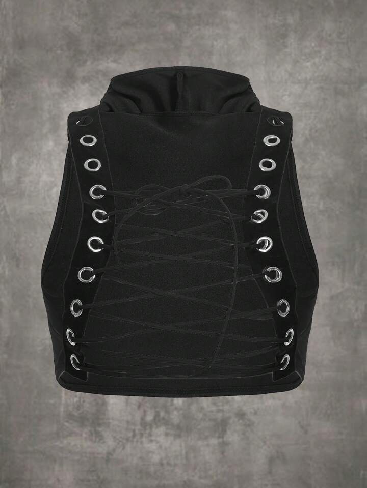 Grunge Punk Lace Up Grommet Eyelet Hooded Top