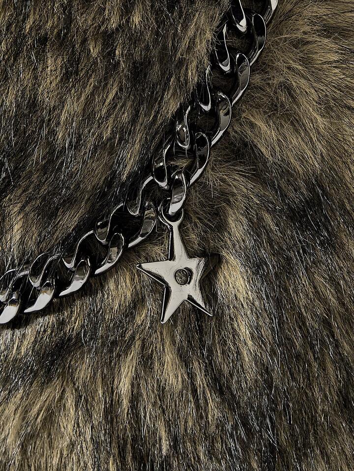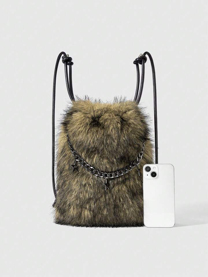 Grunge Punk Ladies,Women Backpack,Brown Purse,Plush,Plush Bag,Pendant Accessory,Bowknot Charm,Heart Charm,Metal Chain,Fashionable,Personality,Versatile,Shopping,Street,Sweet And Cool Girls,Hot Girls,Y2k,Punk,Daily,Autumn And Winter(Random Pattern)