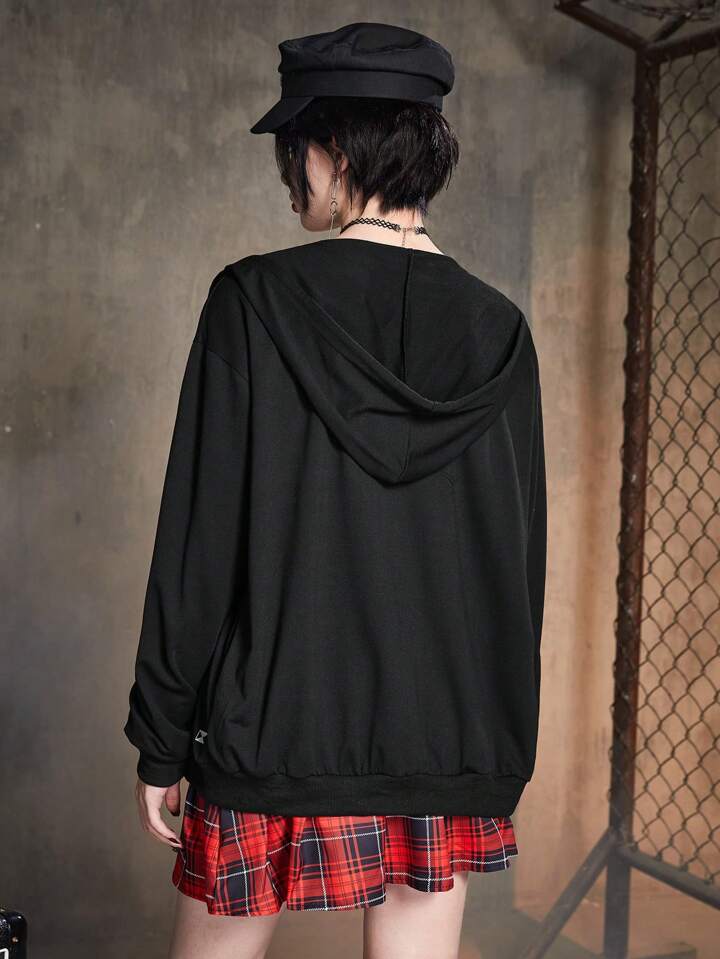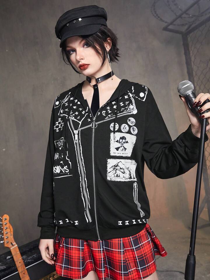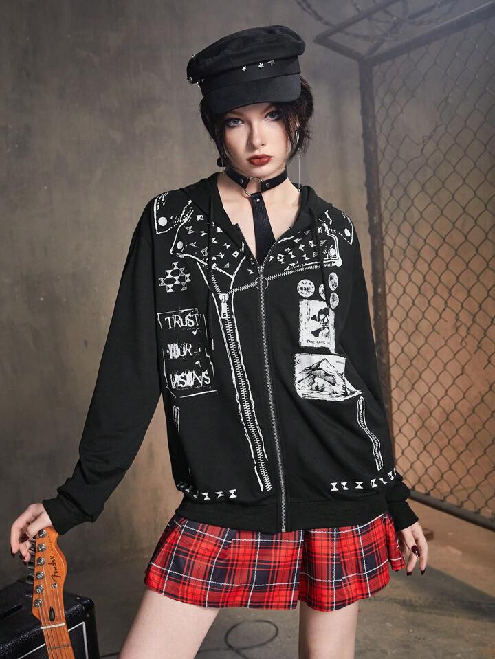 Grunge Punk Letter Graphic Zip Up Hoodie