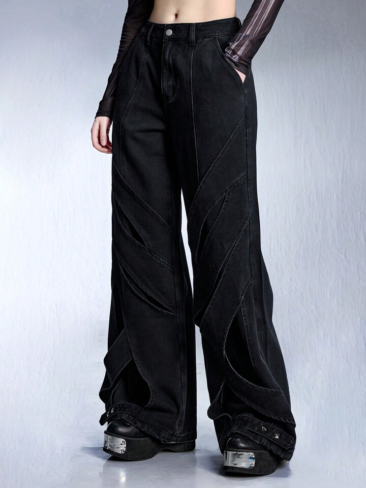 Grunge Punk Low-Waist Street Deconstructed Distressed Washed Denim Jeans