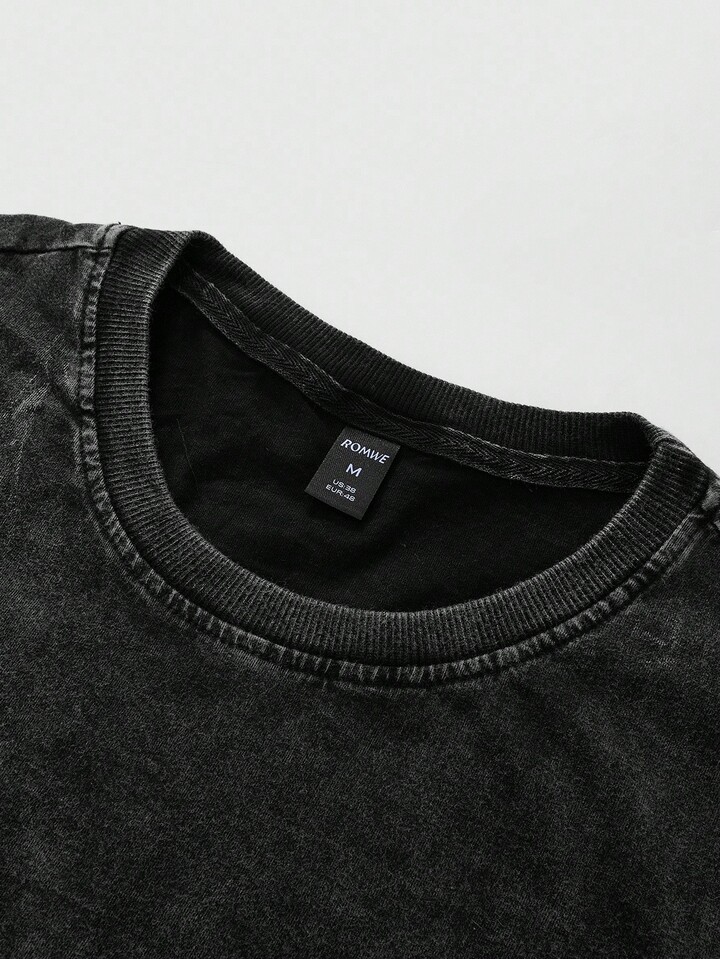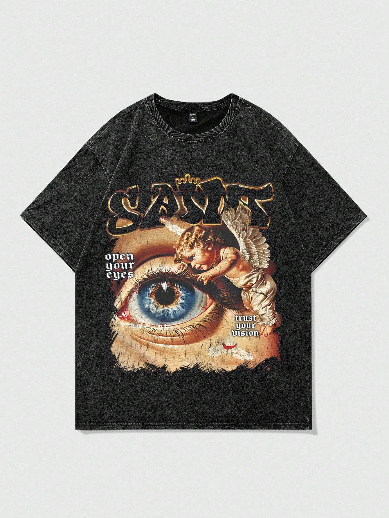 Grunge Punk Men Dark Gothic Style T-Shirt, Unique Eye Pattern, Paired With Avant-Garde Gothic Font Print, Halloween, 2000s Style