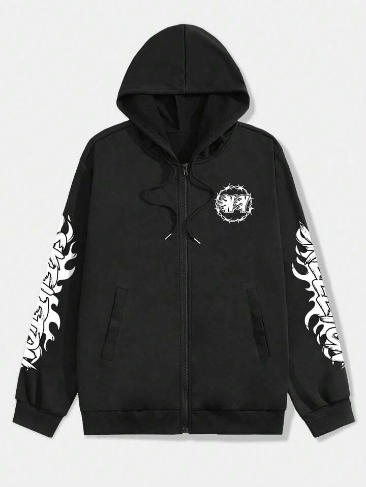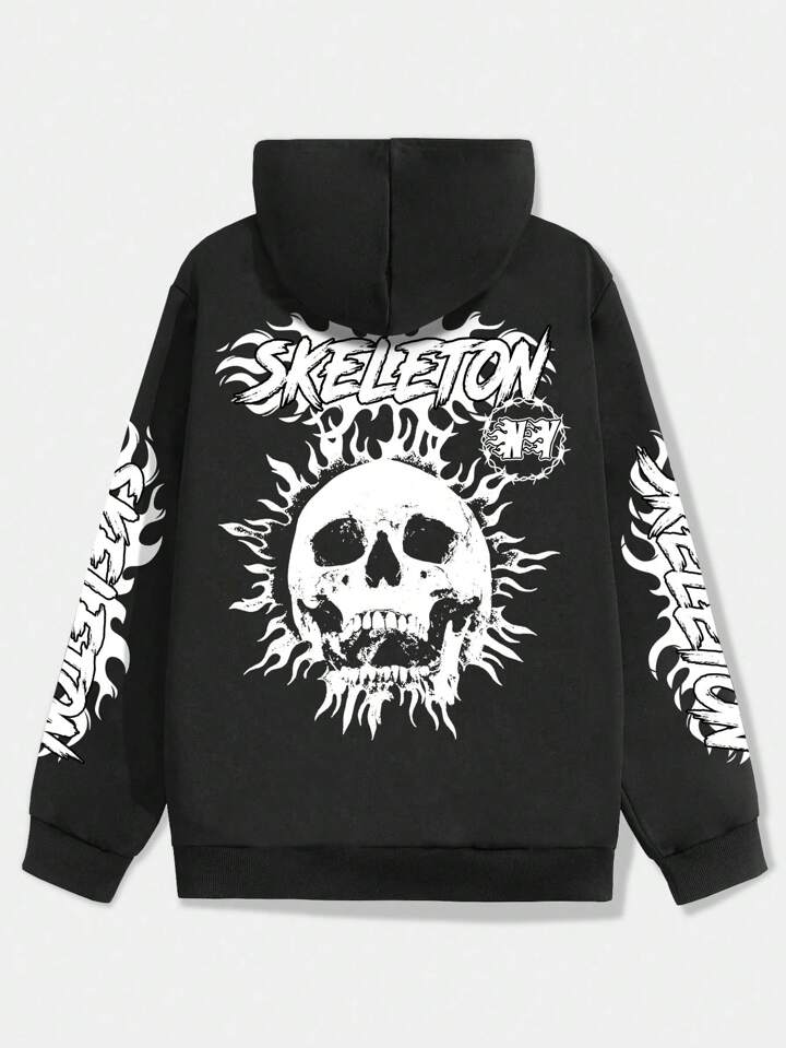 Grunge Punk Men Skull & Letter Graphic Drawstring Hoodie
