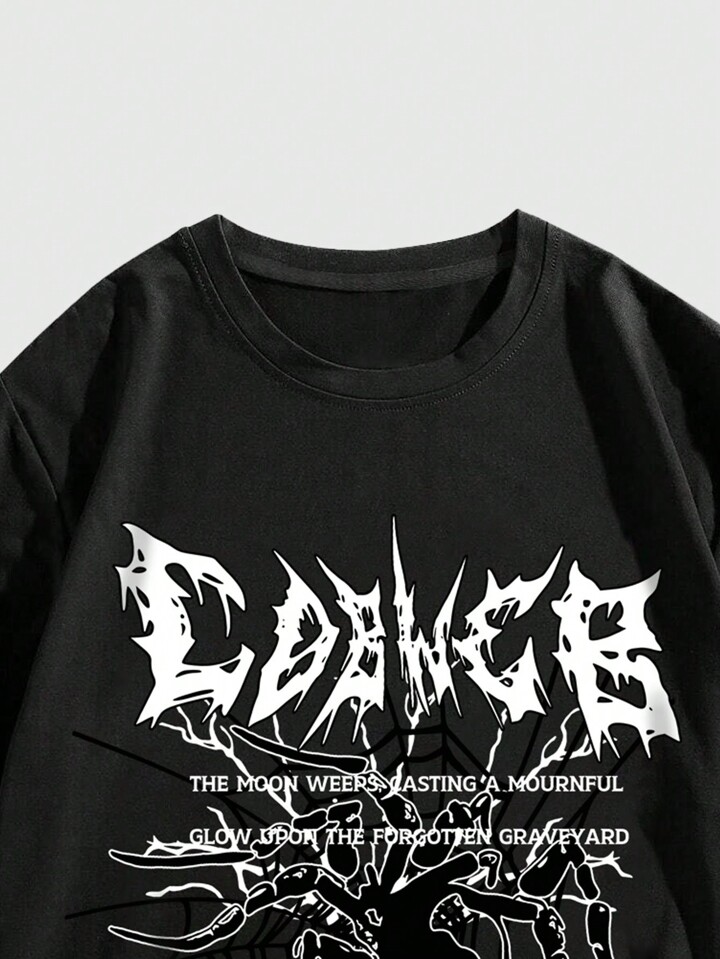 Grunge Punk Men Slogan Graphic Tee, School