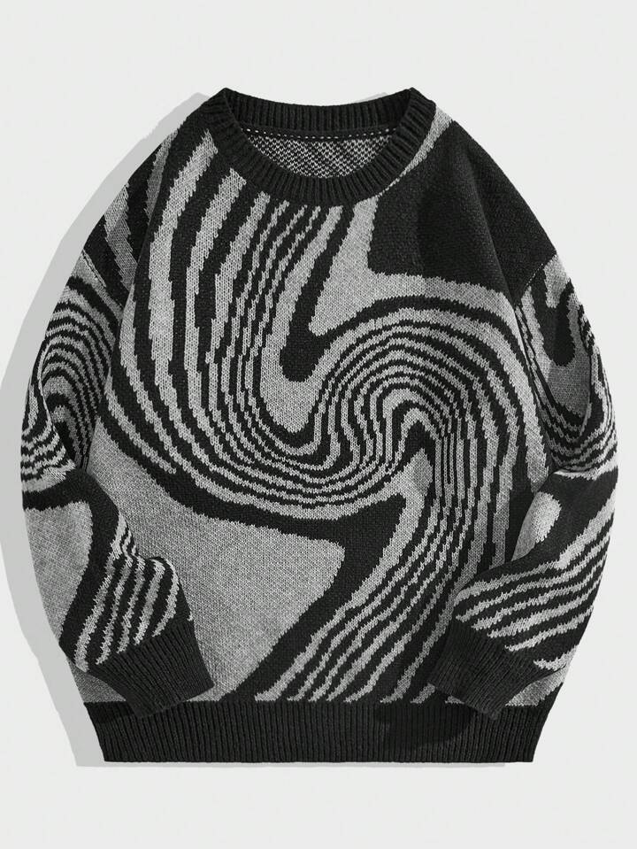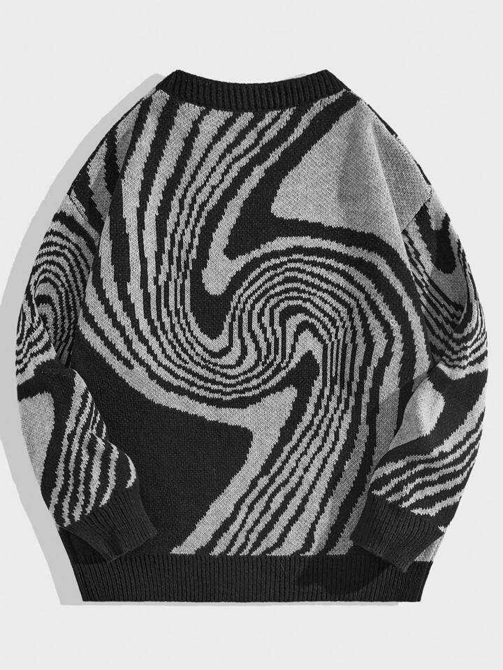 Grunge Punk Men Striped Drop Shoulder Sweater