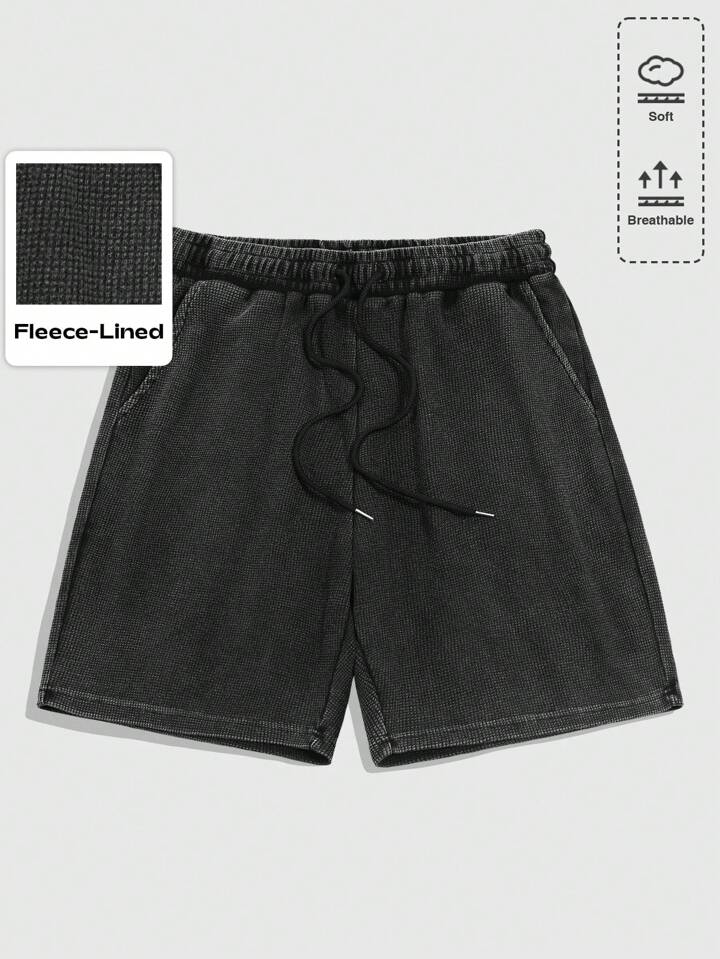 Grunge Punk Men Waffle Texture Fabric Flecked Shorts