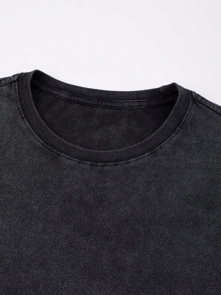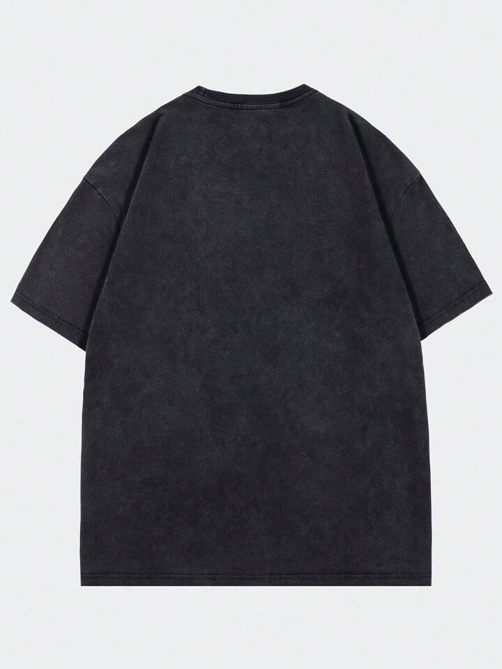 Grunge Punk Men's Blurry Human Silhouette Print Washed Crinkle Short Sleeve T-Shirt, Summer