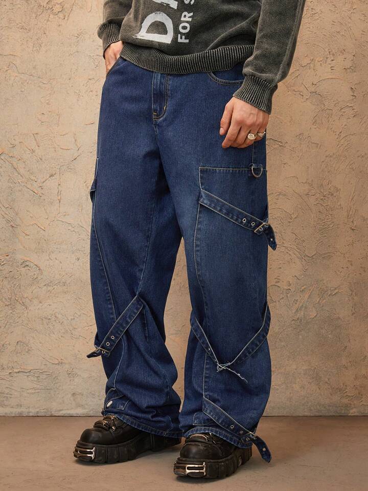 Grunge Punk Men's Button Decorated Casual Straight Leg Jeans