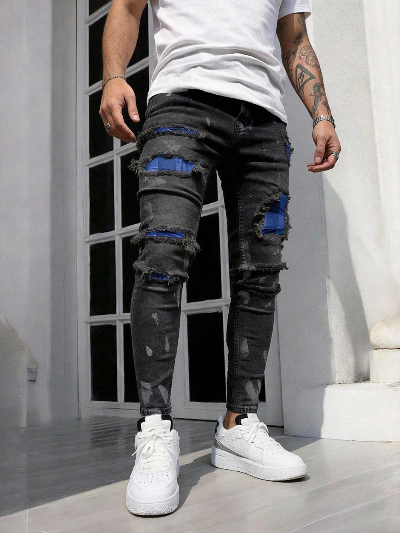 Grunge Punk Men's Casual Distressed Pocket Jeans, Versatile Daily Wear