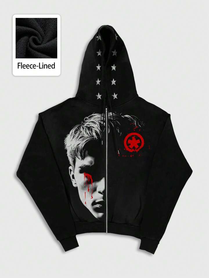 Grunge Punk Men's Casual Figure Print Sweatshirt Hoodie