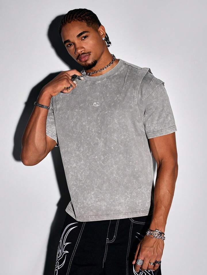 Grunge Punk Men's Casual Washed Short Sleeve T-Shirt, Summer