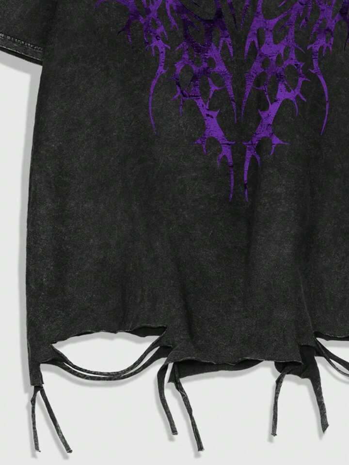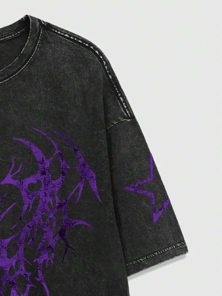 Grunge Punk Men's Goth Summer Graphic Print Short Sleeve Casual Combustible Snowflake T-Shirt, Halloween, 2000s Style