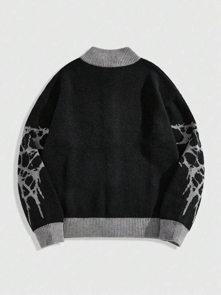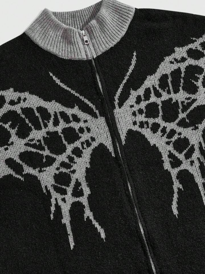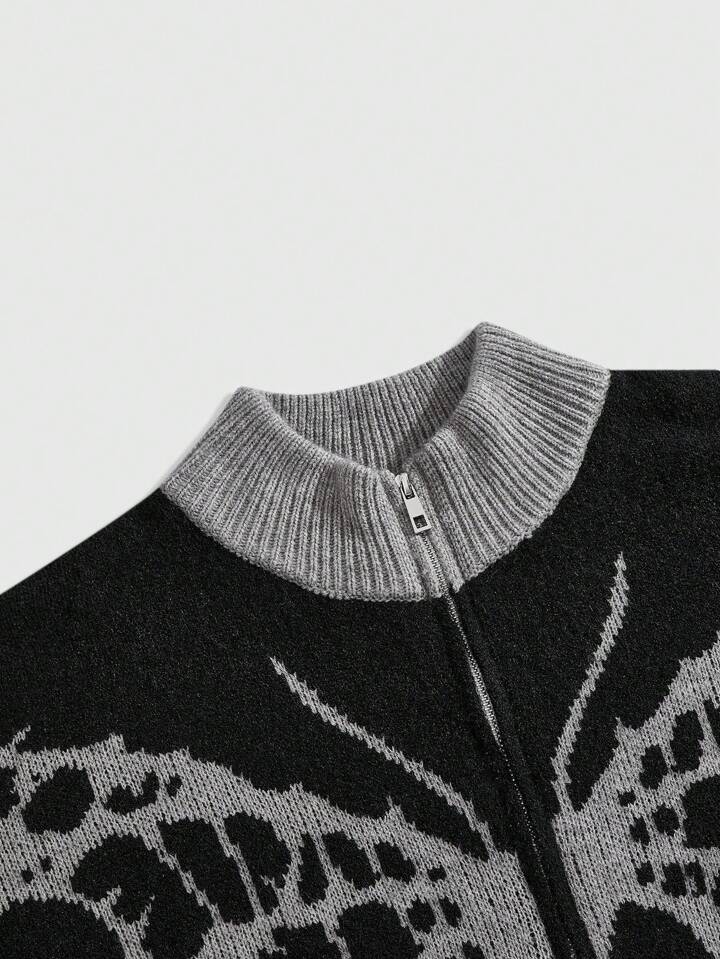 Grunge Punk Men's Metallic Zipper Butterfly Pattern Long Sleeve Cardigan Sweater