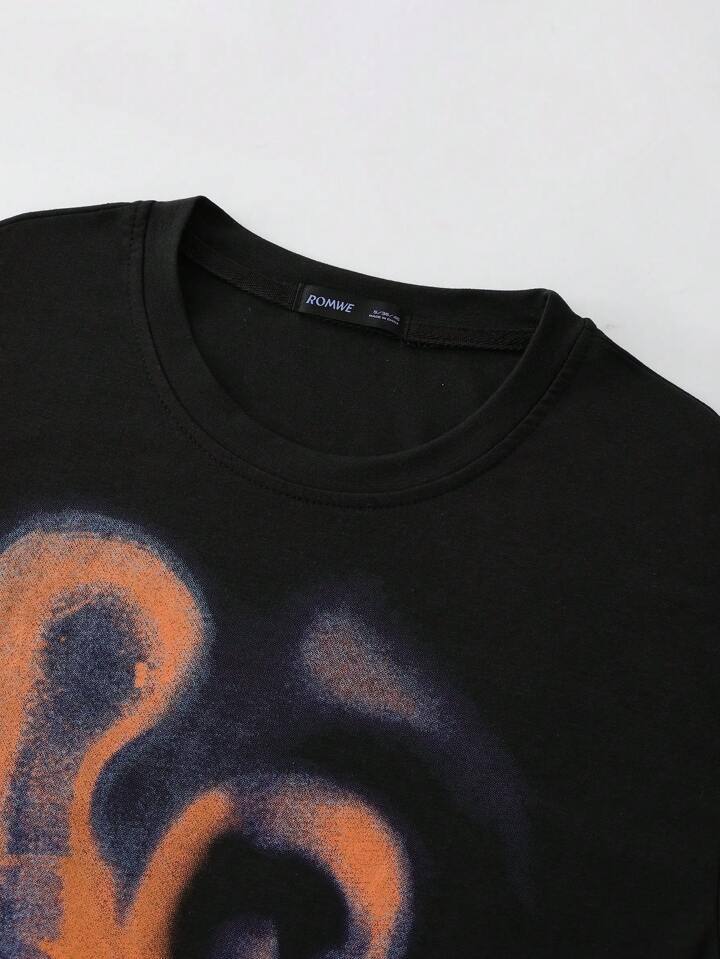 Grunge Punk Men's Retro Streetwear Thermal Image Person Print Short Sleeve T-Shirt, 2000s Style
