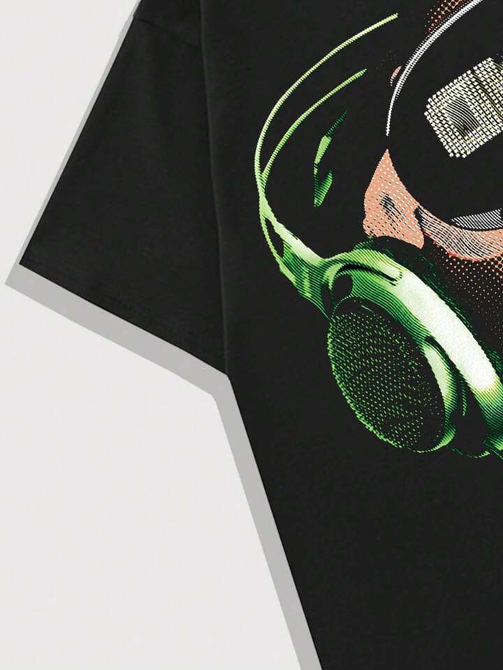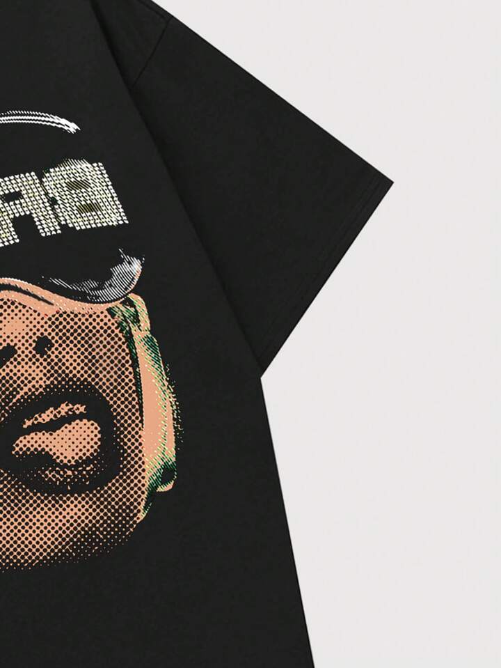 Grunge Punk Men's Summer Casual Short Sleeve T-Shirt With Letter And Character Print, School