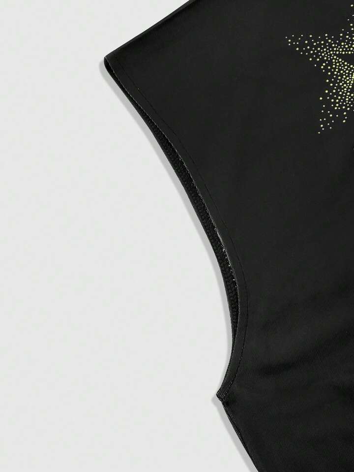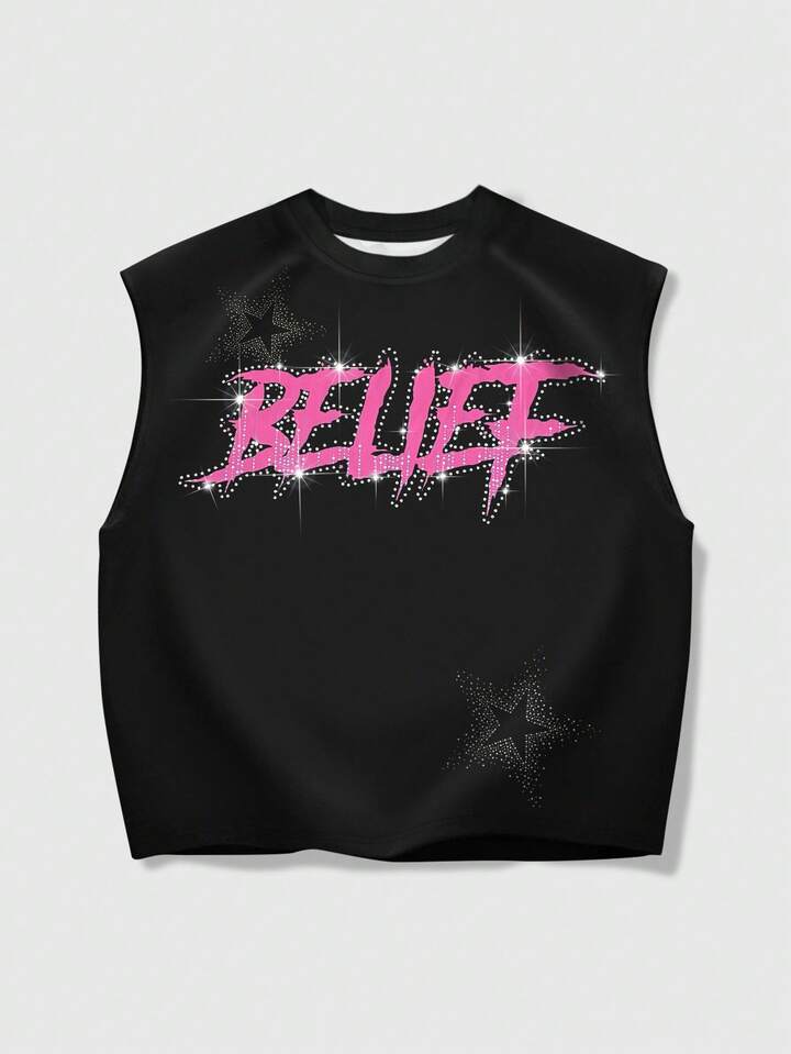Grunge Punk Men's Summer Fashion Street Punk Style Virgin Mary Letter Print Rhinestone Embellished Loose Tank Top