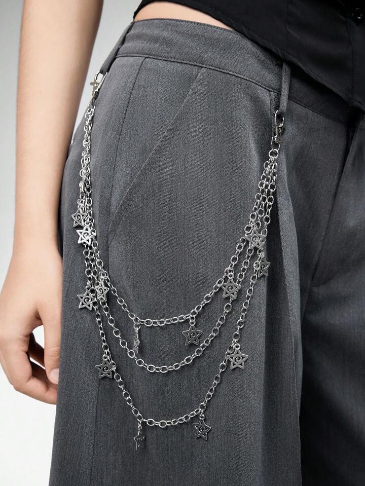 Grunge Punk Metallic Star Waist Chain, Minimalist Fashion Casual Everyday Wear