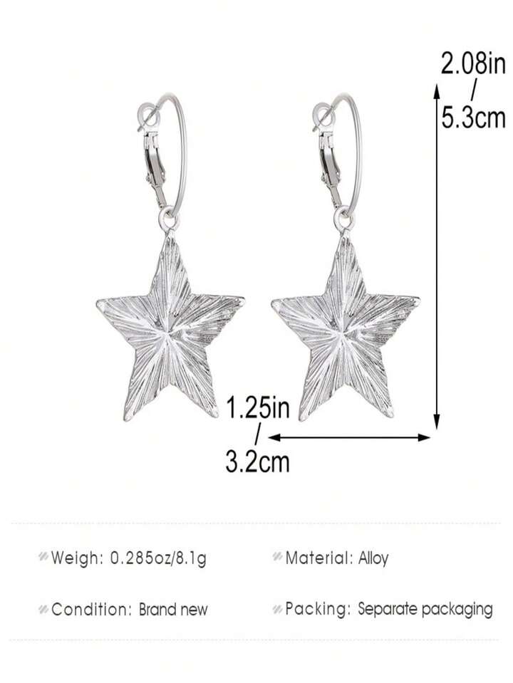 Grunge Punk Minimalist Cool-Toned Silver Star Shaped Earrings For Women, With Ins-Style Simple Design, Cross-Border Fashion Earrings