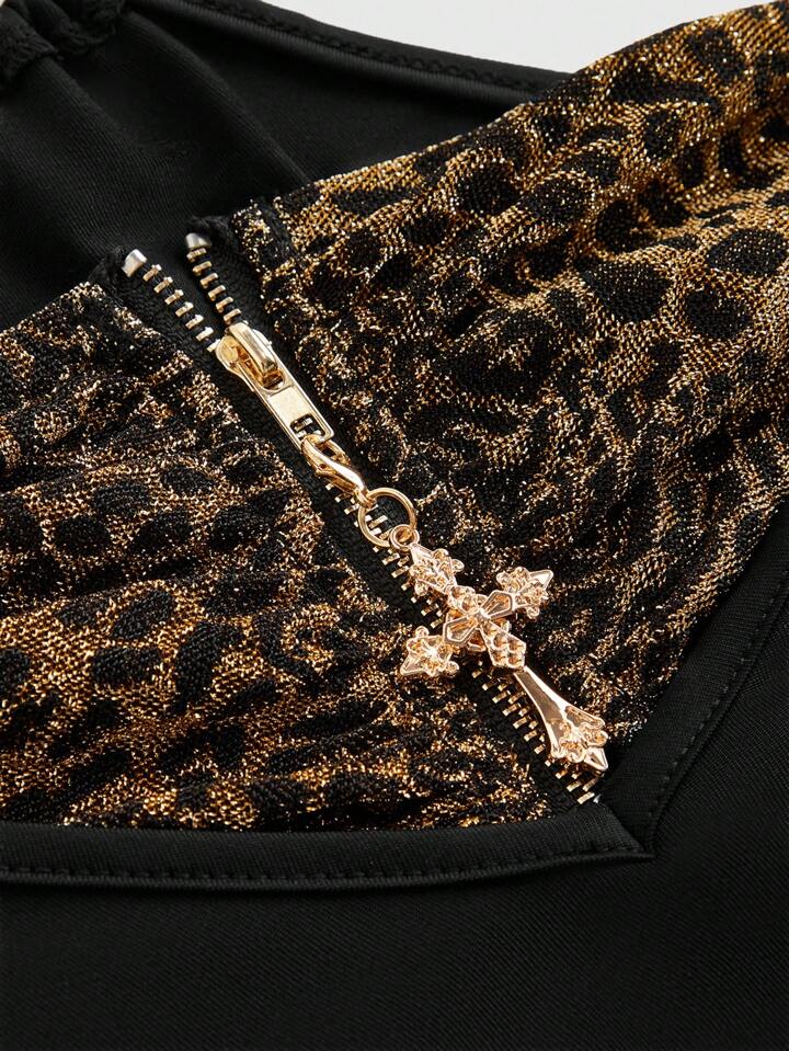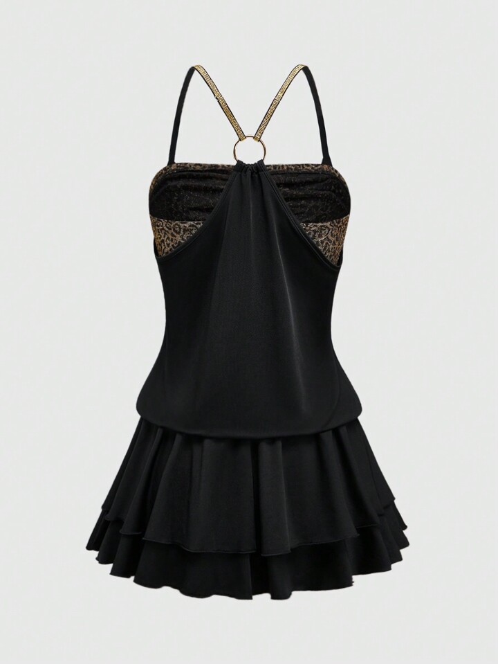 Grunge Punk Modern Leopard Print Patchwork Women's Gyaru Ruffle Hem Low Waist Mini Party Dress