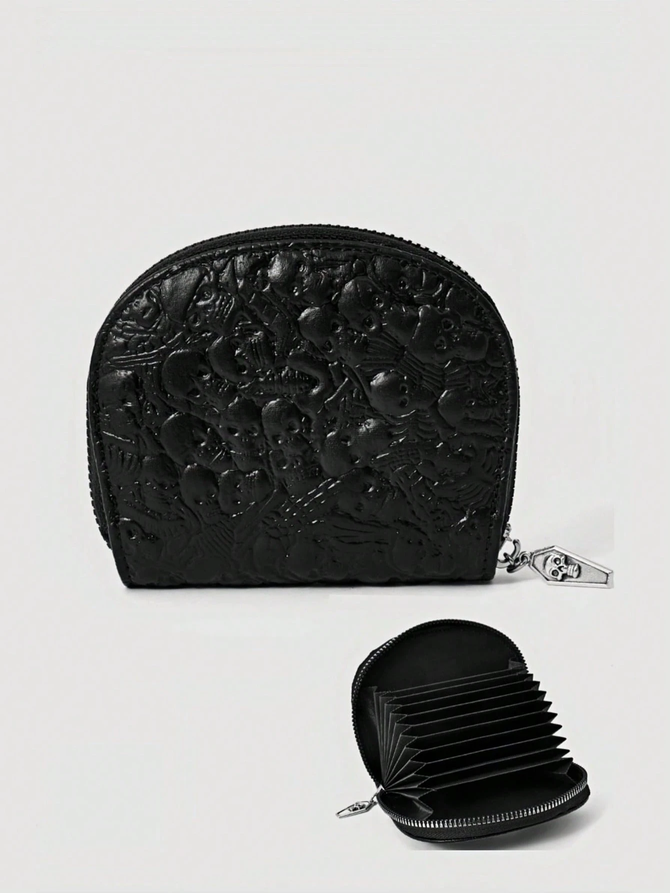 Grunge Punk Multiple Skulls 3D Embossed Metal Tag, Dark Gothic Retro Punk Personalized ID Card Wallet Card Holder, Unisex