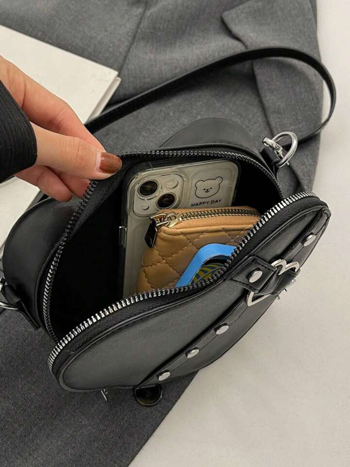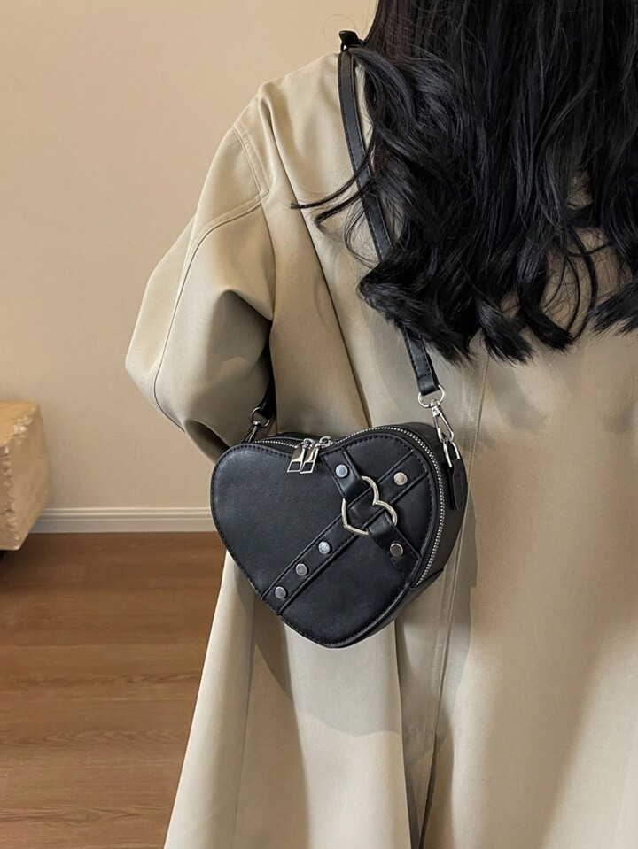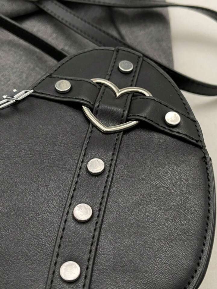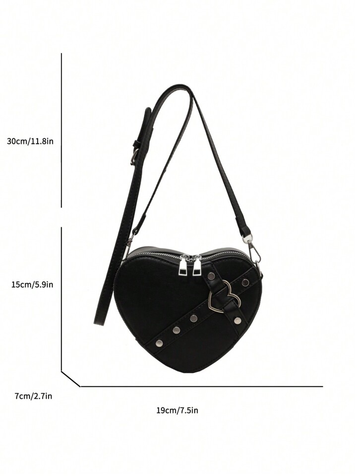Grunge Punk New Hot Gothic Style Rivet Heart Shaped Shoulder Bag For Women, Fashion Crossbody Bag Valentines, Heart Purse, Perfectly Match With Valentine Day Dress