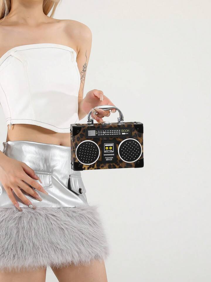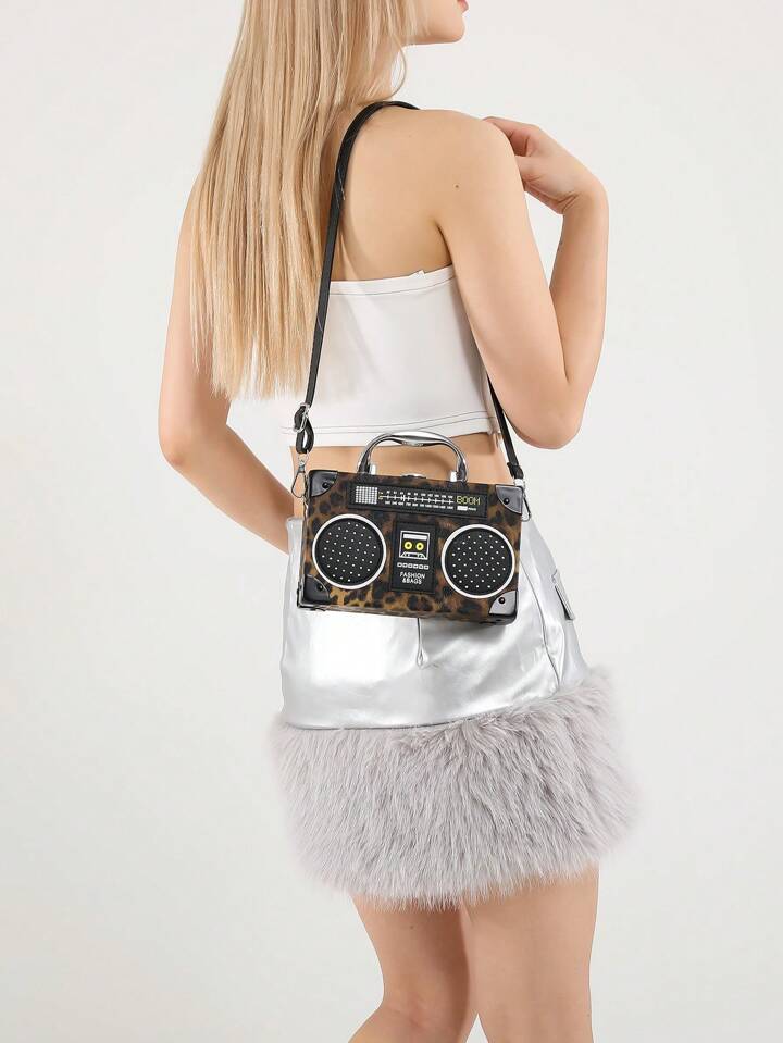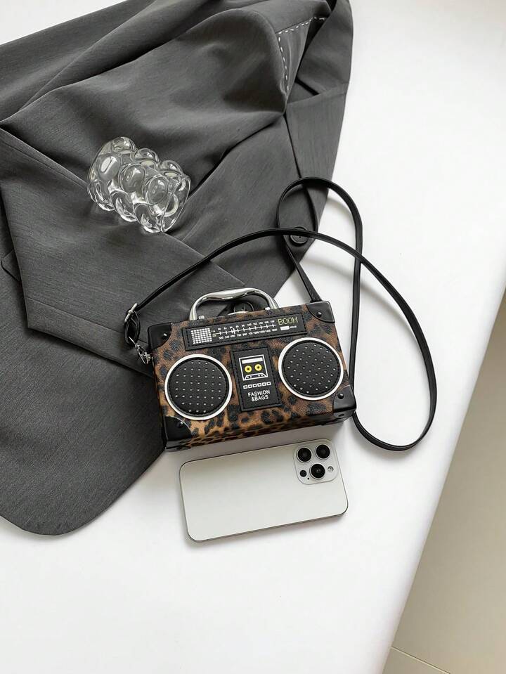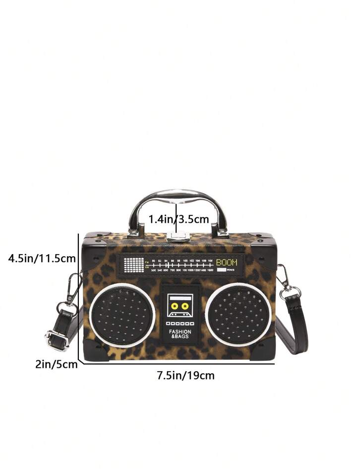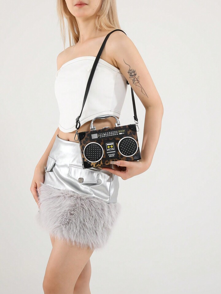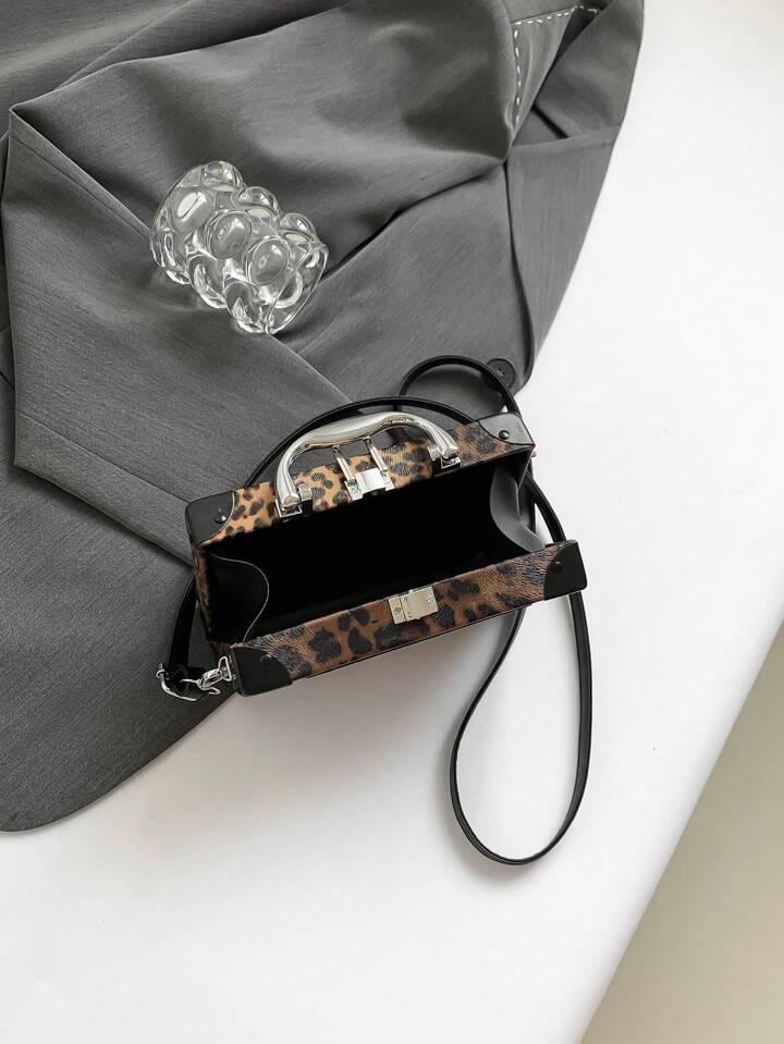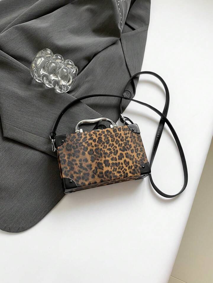 Grunge Punk New Women Casual Leopard Print Box Bag, Punk Rock Style Shoulder Crossbody Bag