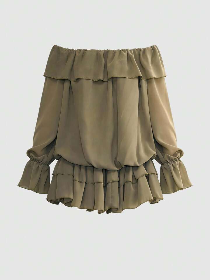 Grunge Punk Off-Shoulder Cake A-Line Sheer Chiffon Mini Dress