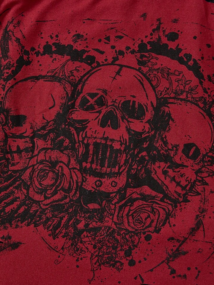 Grunge Punk PUNK Style Skull & Rose Cutout Asymmetrical Neck Short Sleeve Top