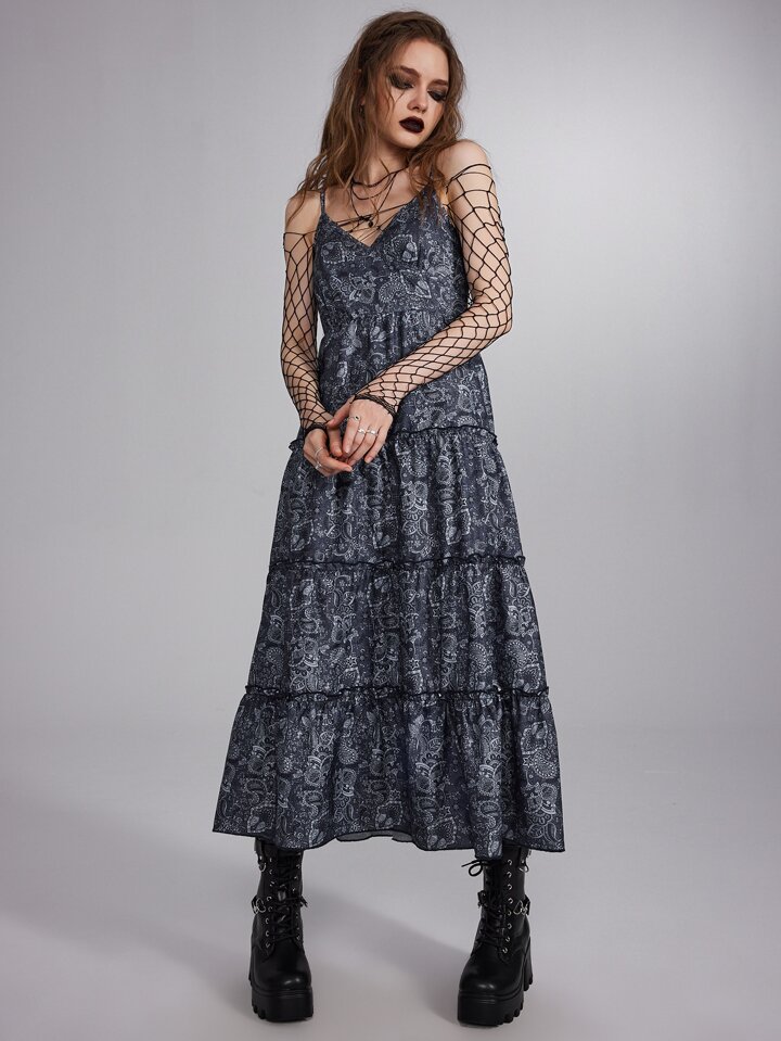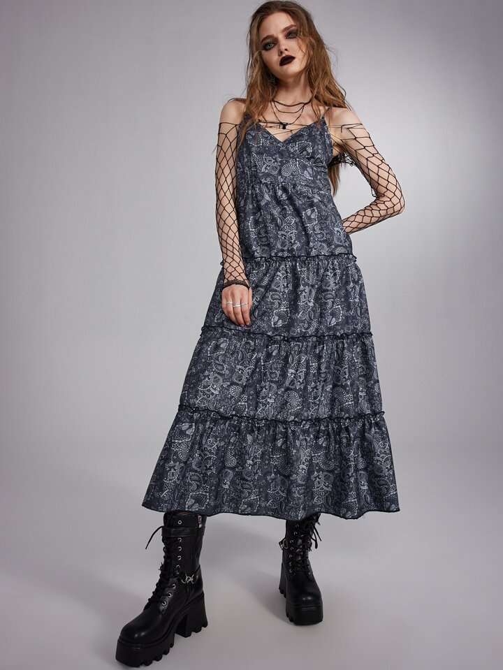 Grunge Punk Paisley Print Frill Trim Cami Dress